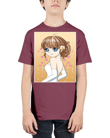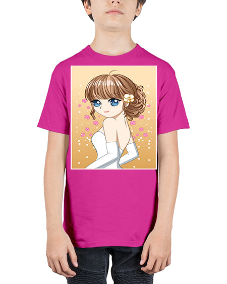 Beautiful and happy girl wearing wedding dress 84# - anime - Youth Tee Unisex