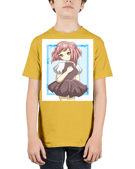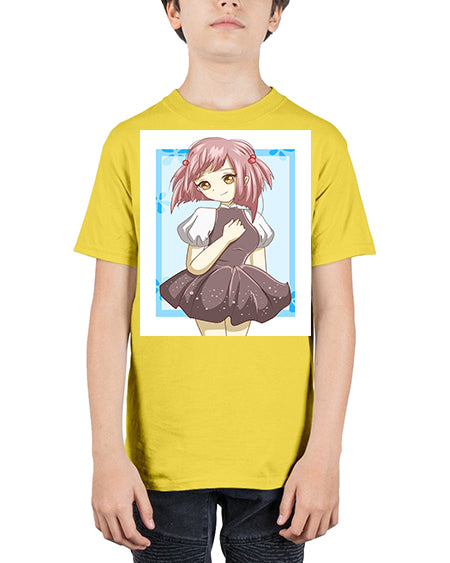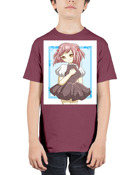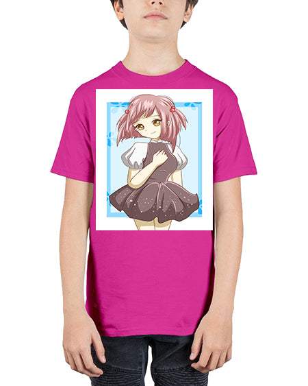Cute and beautiful girl pink hair with dark pink dress 121# - anime - Youth Tee Unisex
