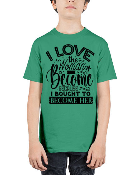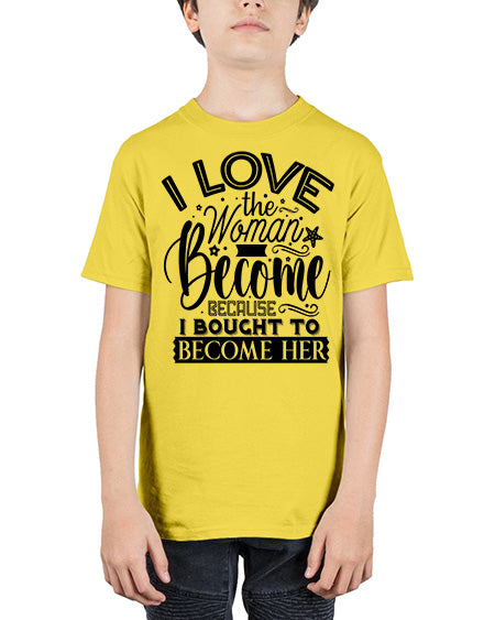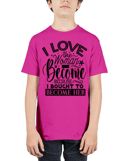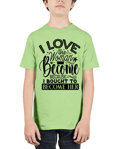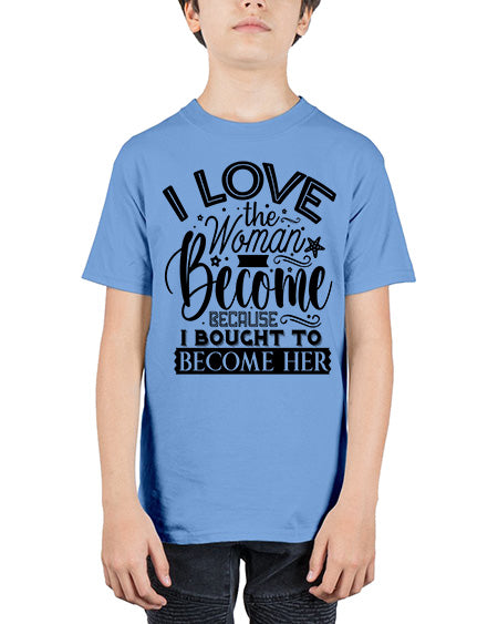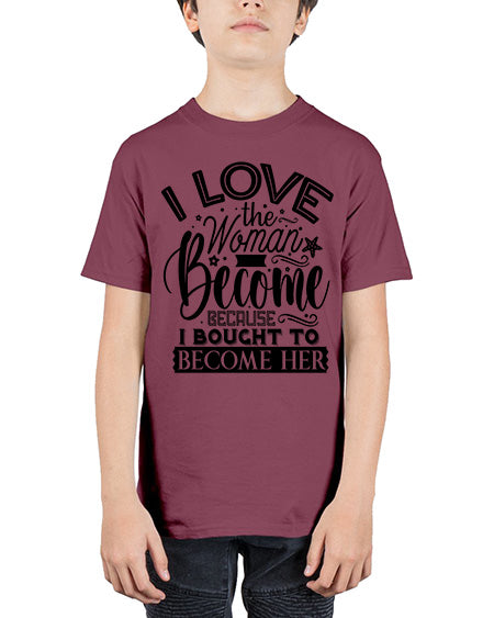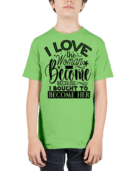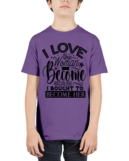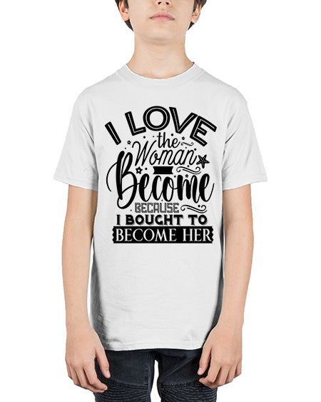 I love the woman ive become because i bought to become her Style 32# - Sub - Youth Tee Unisex