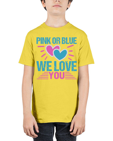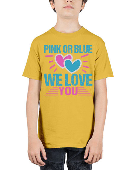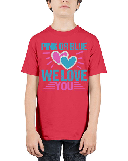 Pink or Blue we love you Style 189# - babies - Youth Tee Unisex Note: There is a 2 - 4 day creation time, which may delay shipping. Unisex, machine washable, durable cotton blend Details- Preshrunk jersey knit