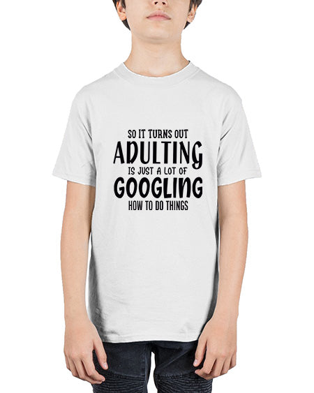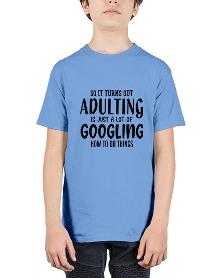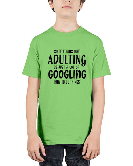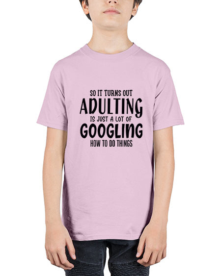so it turns out adulting is just a lot of googling how to do things 85# - graphic - Youth Tee Unisex