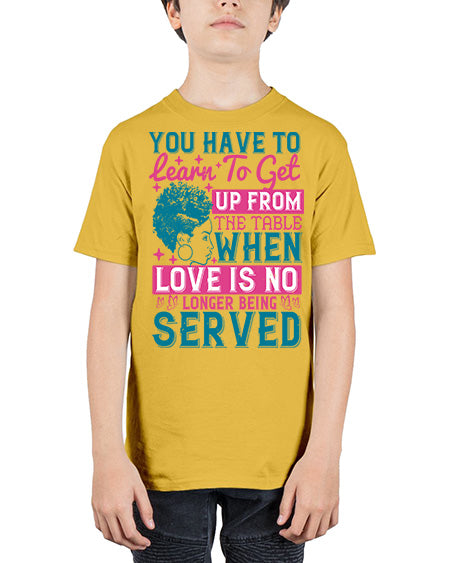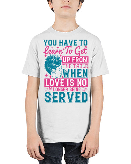 Youve got to learn to leave the table when loves no longer being served Style 41# - black afro - Youth Tee Unisex
