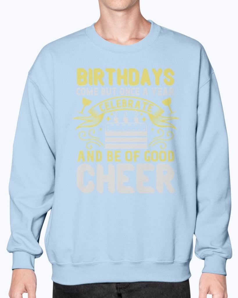 Birthdays come but once a year, celebrate and be of good cheer- Birthday-Sweatshirt - Crew