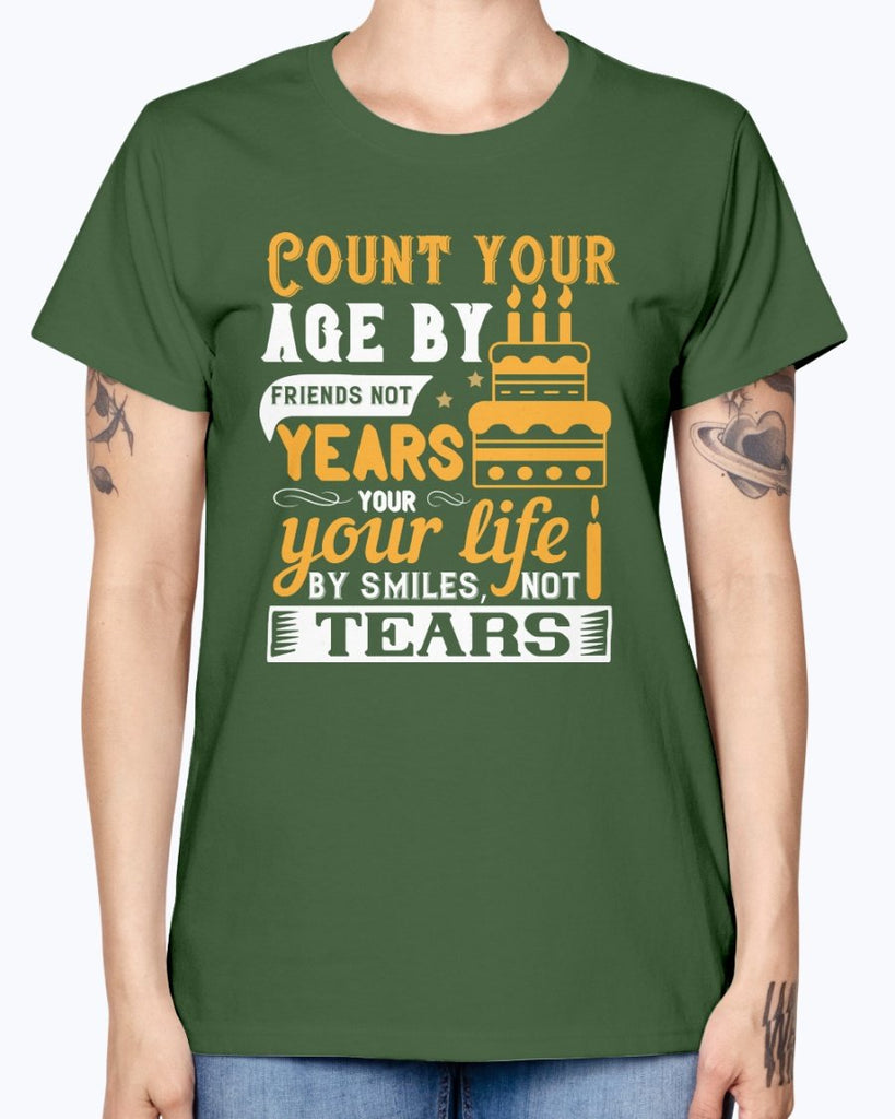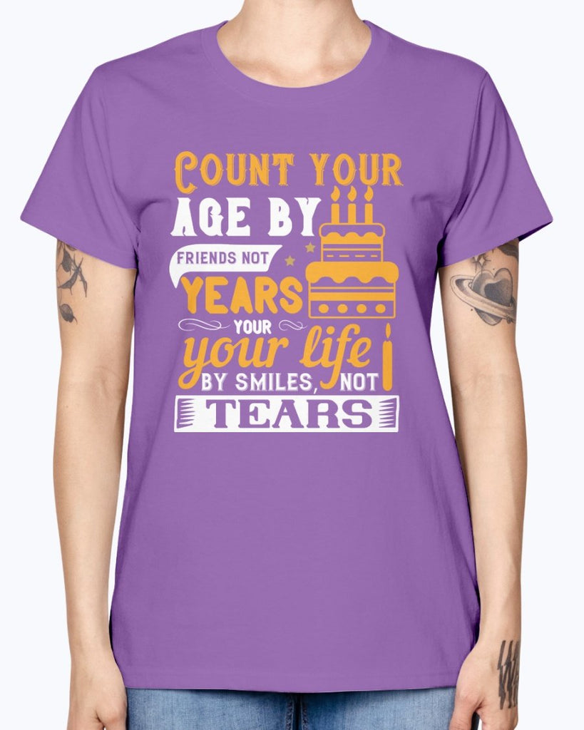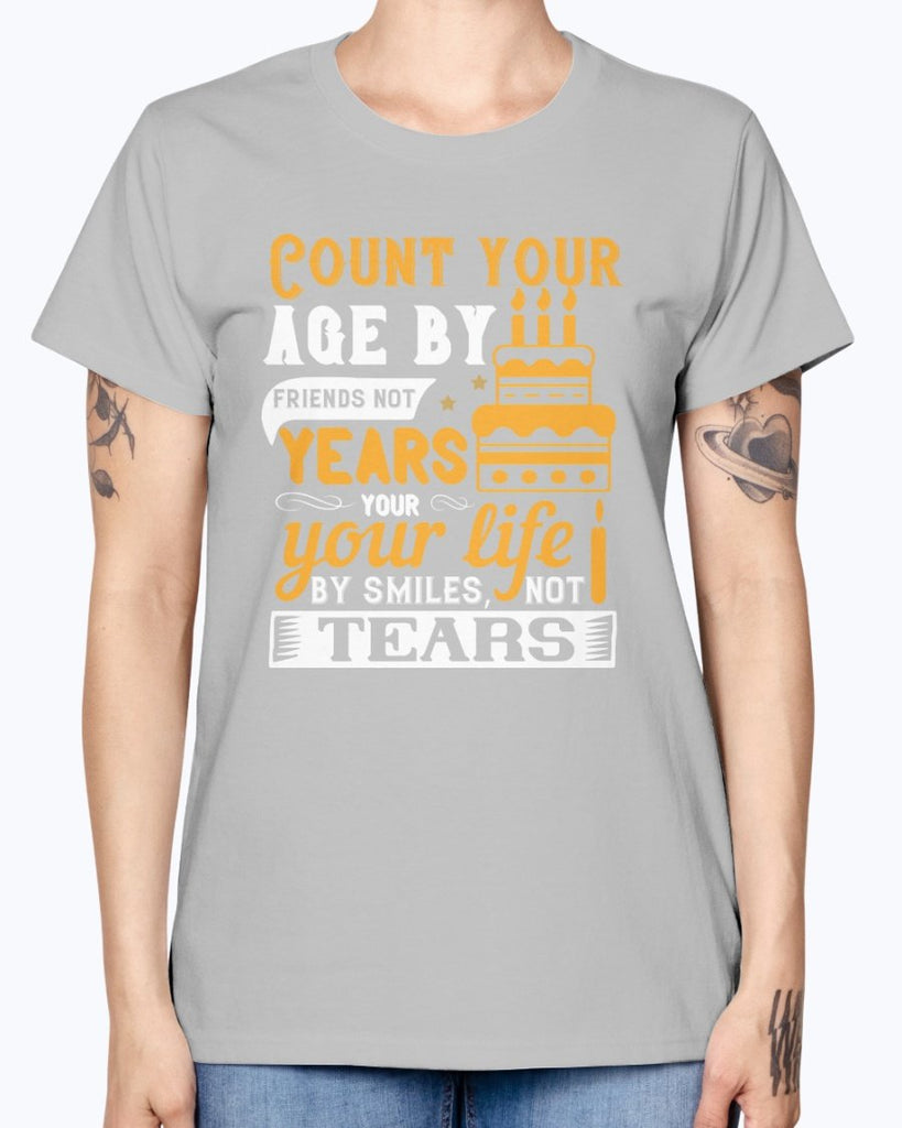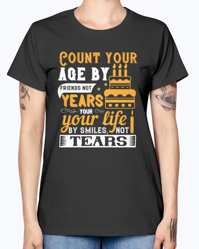 Count your age by friends, not years, your life by smiles, not tears - Birthday -Missy T-Shirt