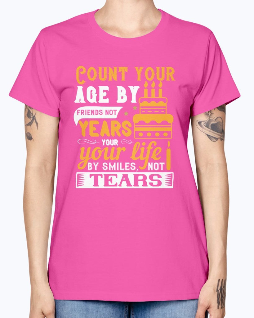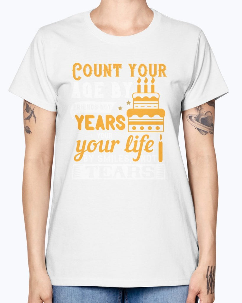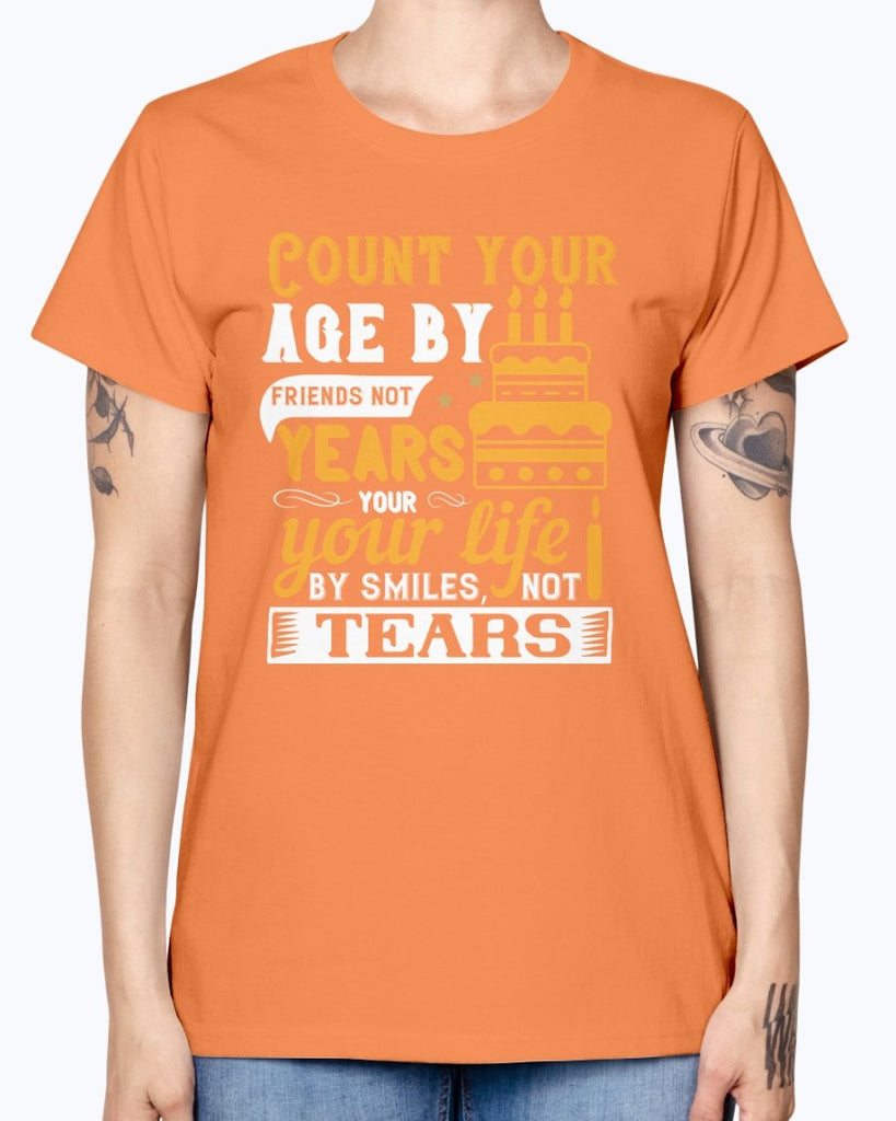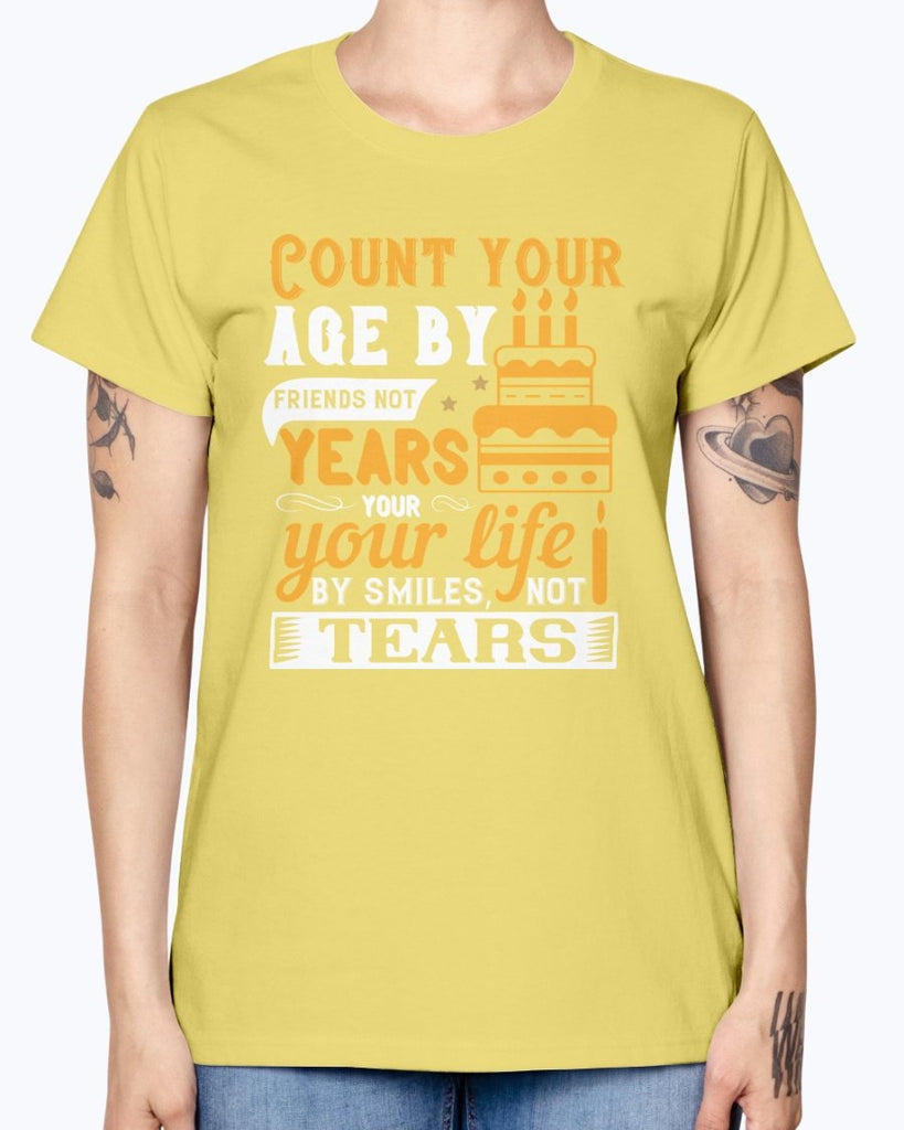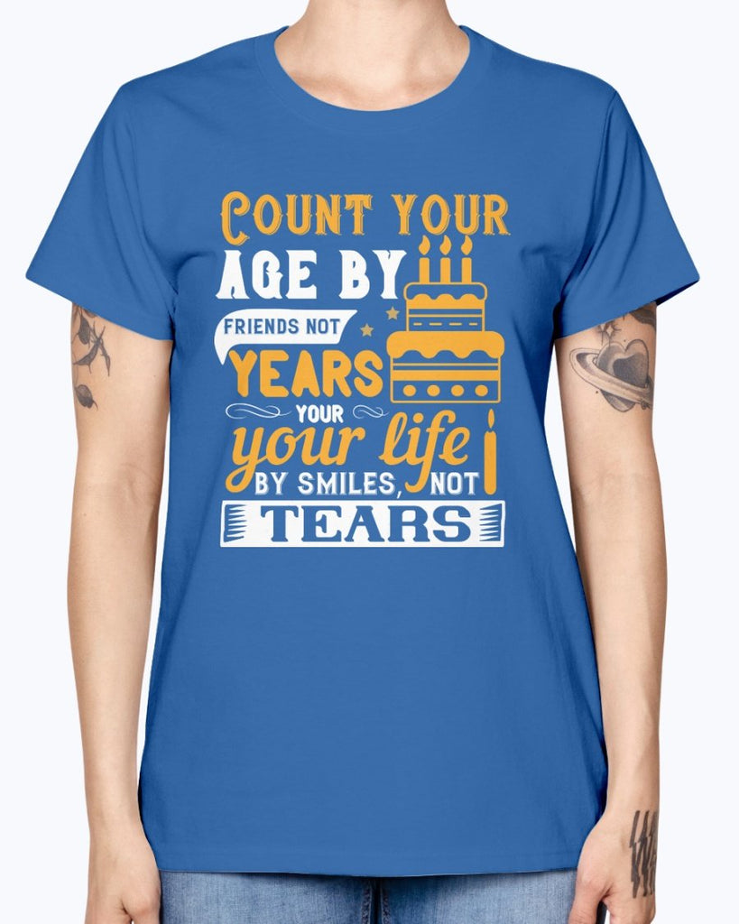 Count your age by friends, not years, your life by smiles, not tears - Birthday -Missy T-Shirt