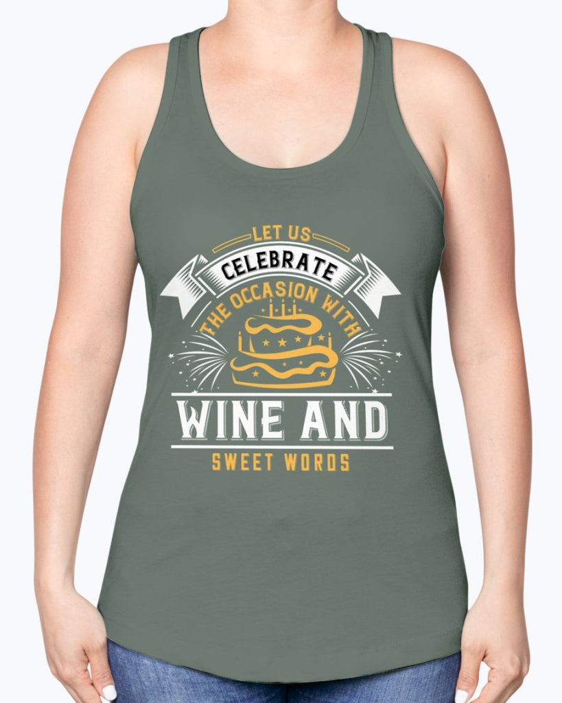 Let us celebrate the occasion with wine and sweet words- Birthday -Racerback Tank