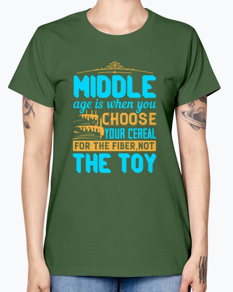 Middle age is when you choose your cereal for the fiber, not the toy- Birthday -Missy T-Shirt