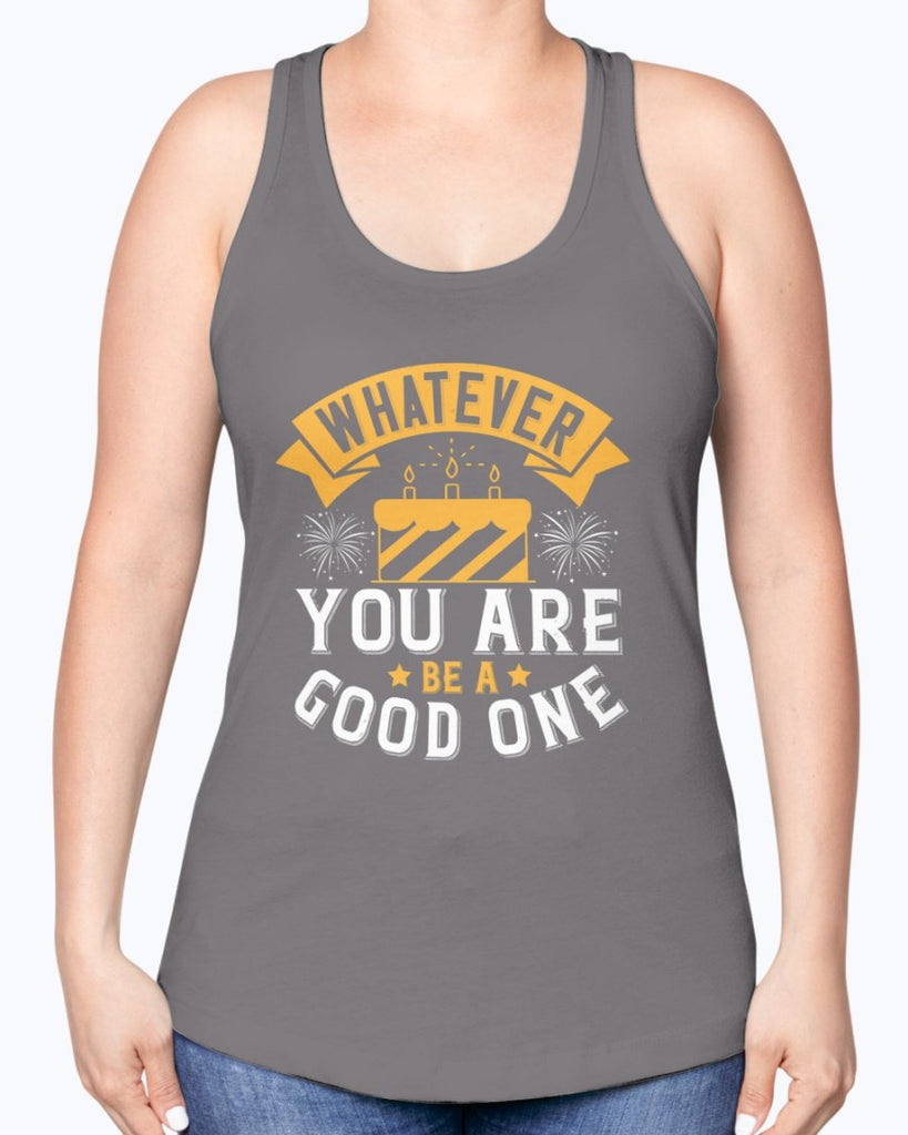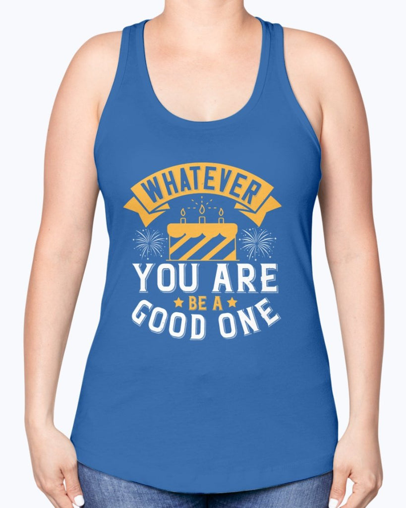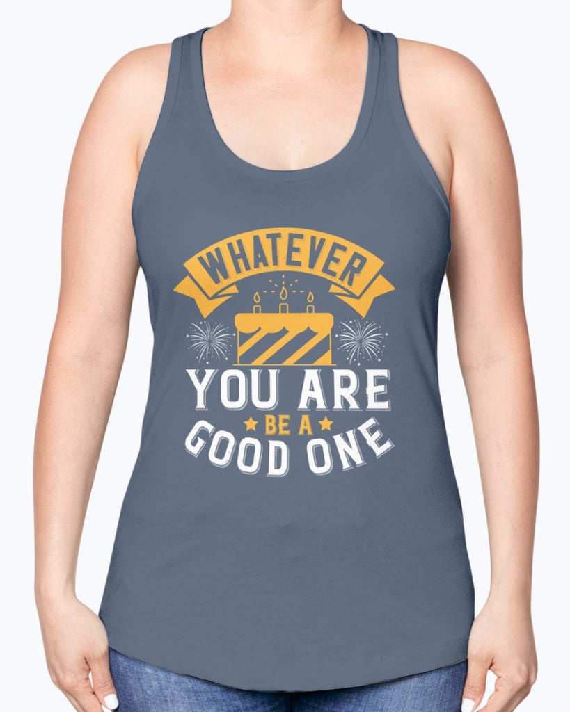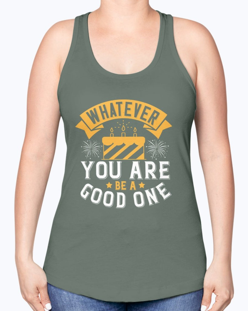 Whatever you are, be a good one- Birthday -Racerback Tank