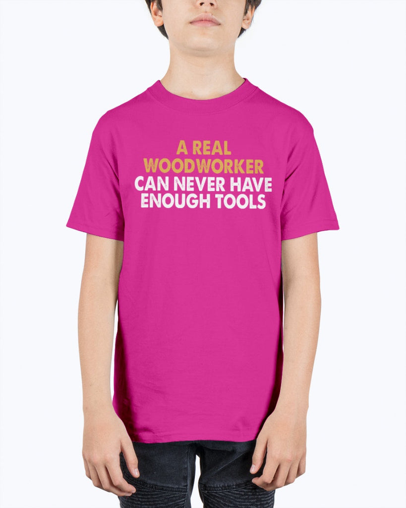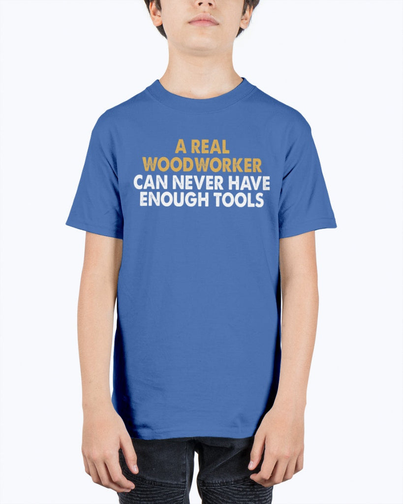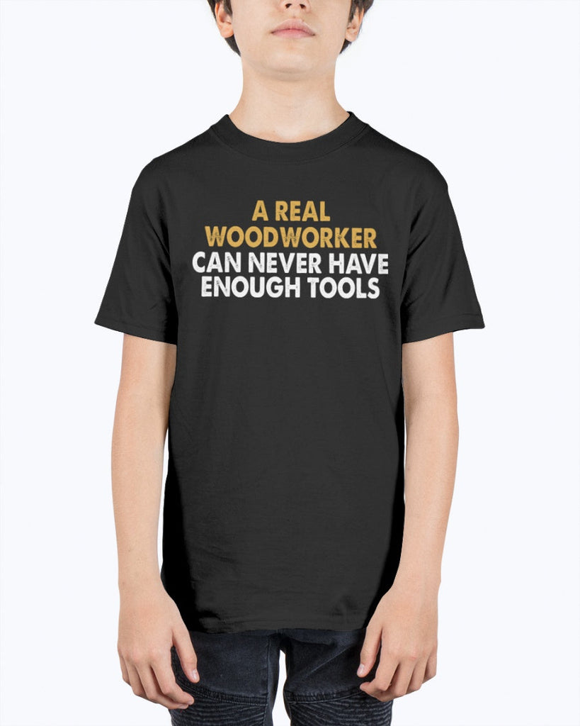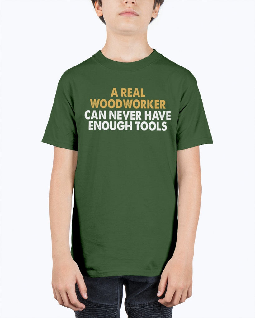 A real woodworker never has enough tools- Youth Tee Unisex Note: There is a 2 - 4 day creation time, which may delay shipping. Unisex, machine washable, durable cotton blend Details- Preshrunk jersey knit