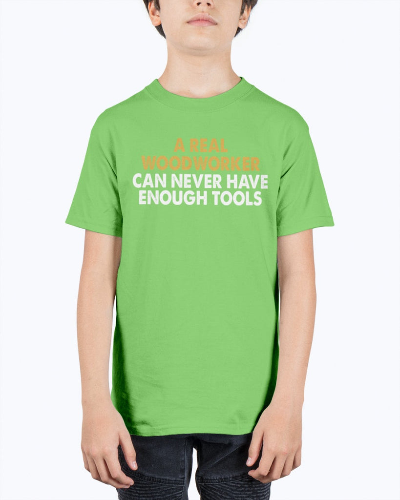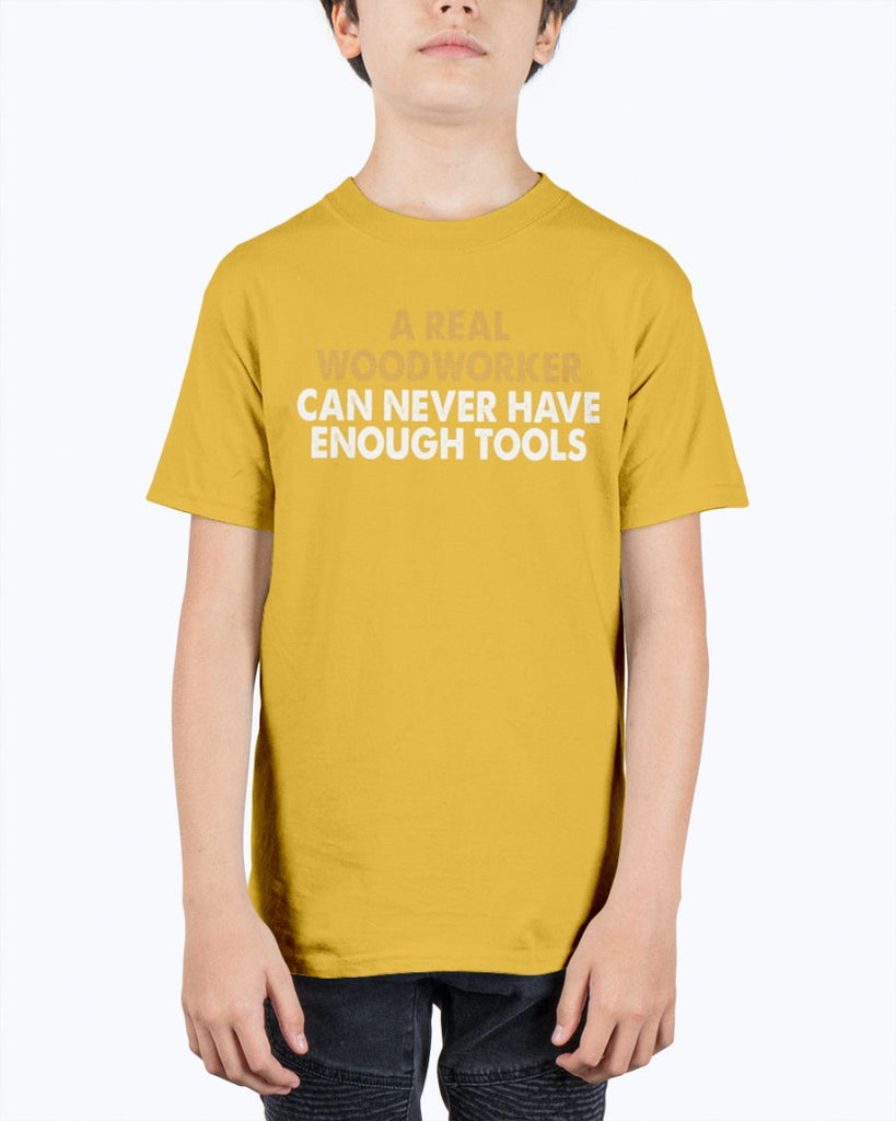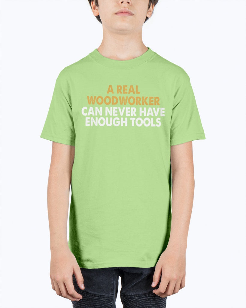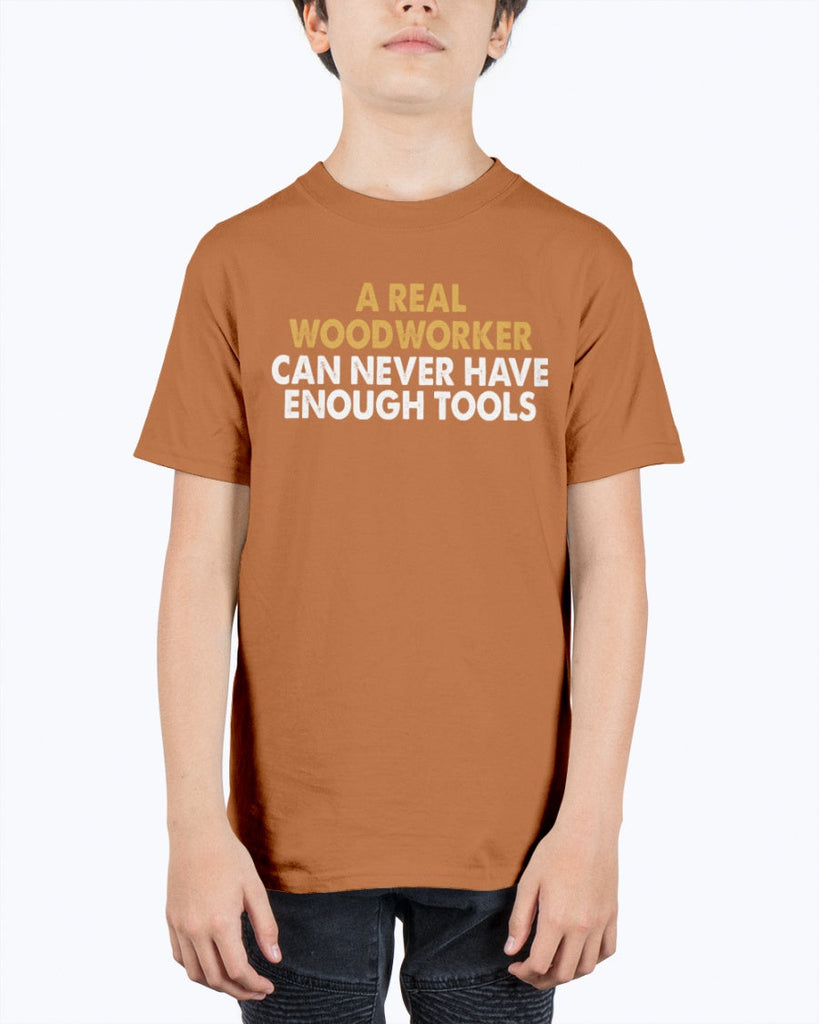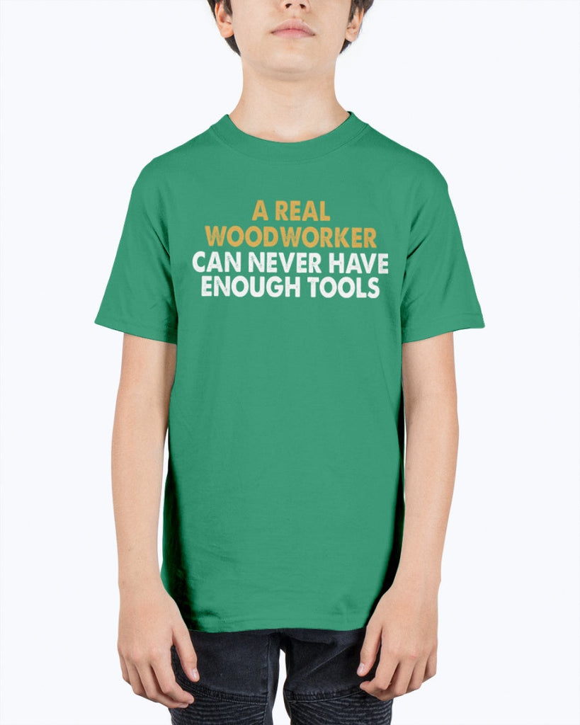 A real woodworker never has enough tools- Youth Tee Unisex Note: There is a 2 - 4 day creation time, which may delay shipping. Unisex, machine washable, durable cotton blend Details- Preshrunk jersey knit