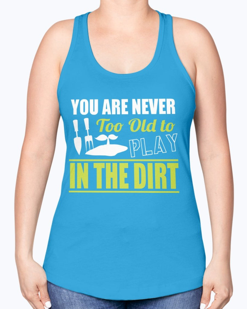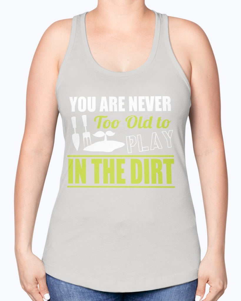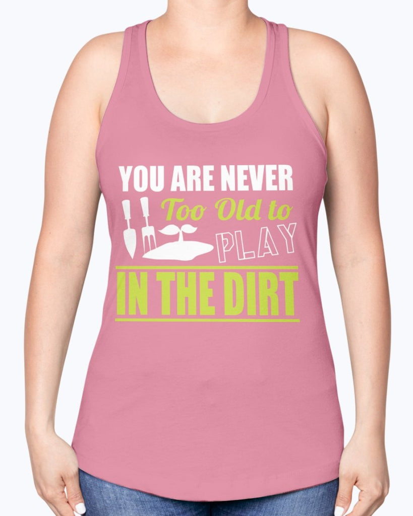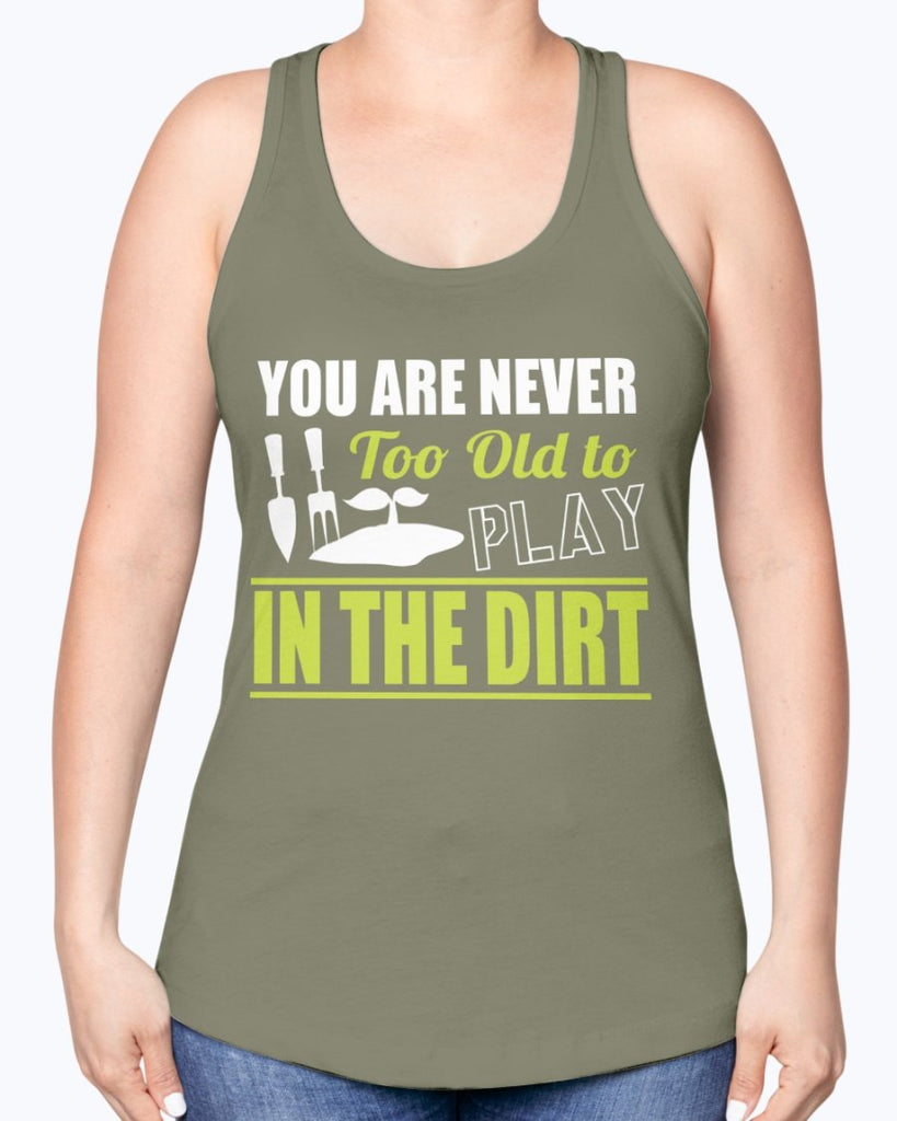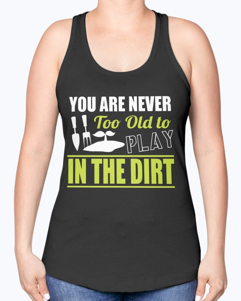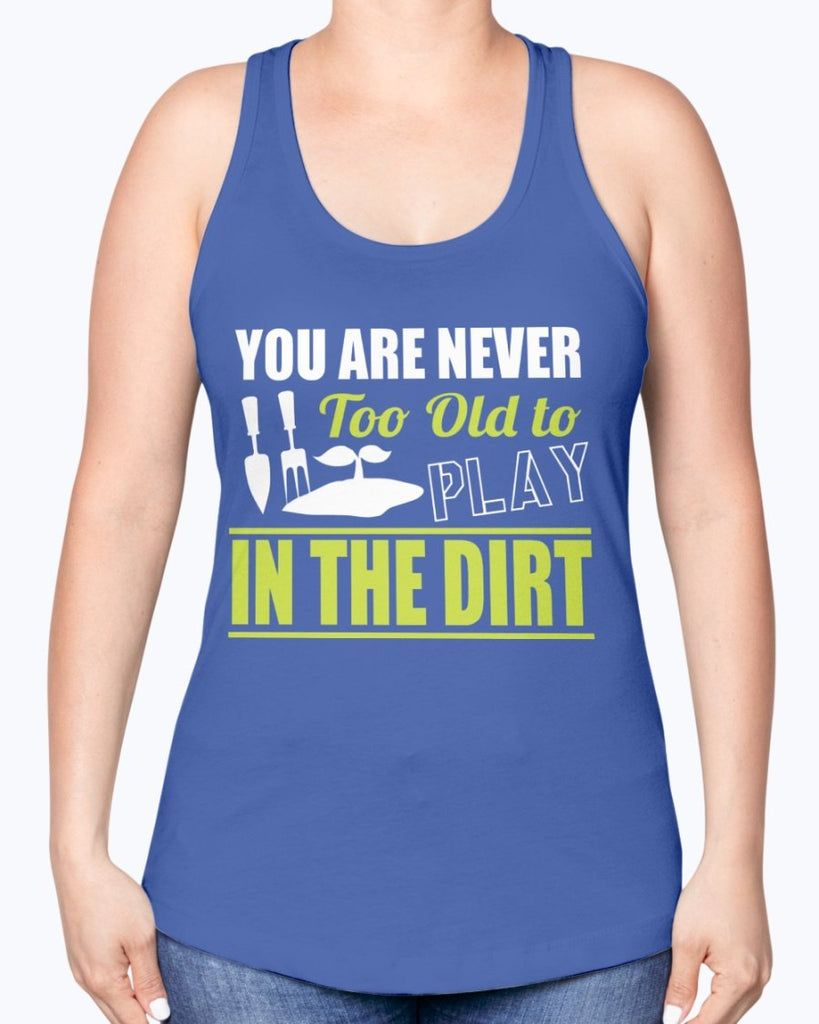 you are never too old to play in the dirt - Gardening- Racerback Tank