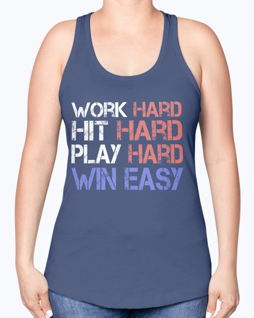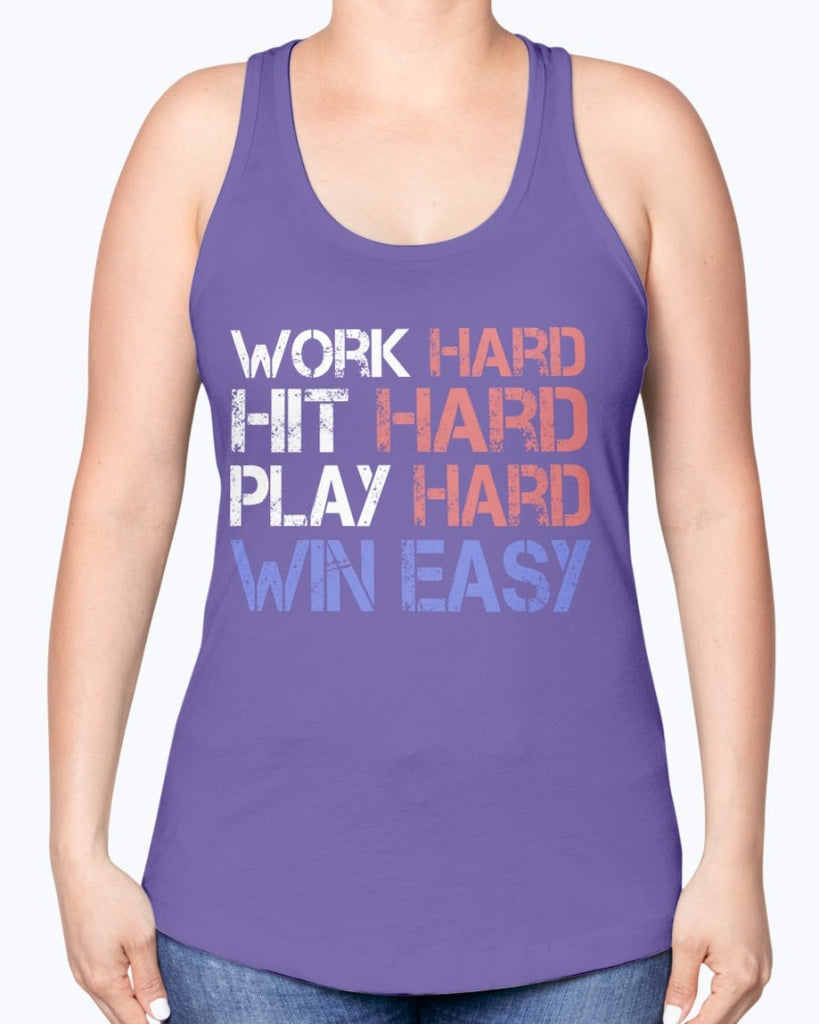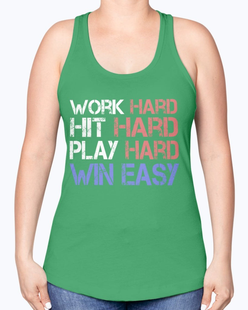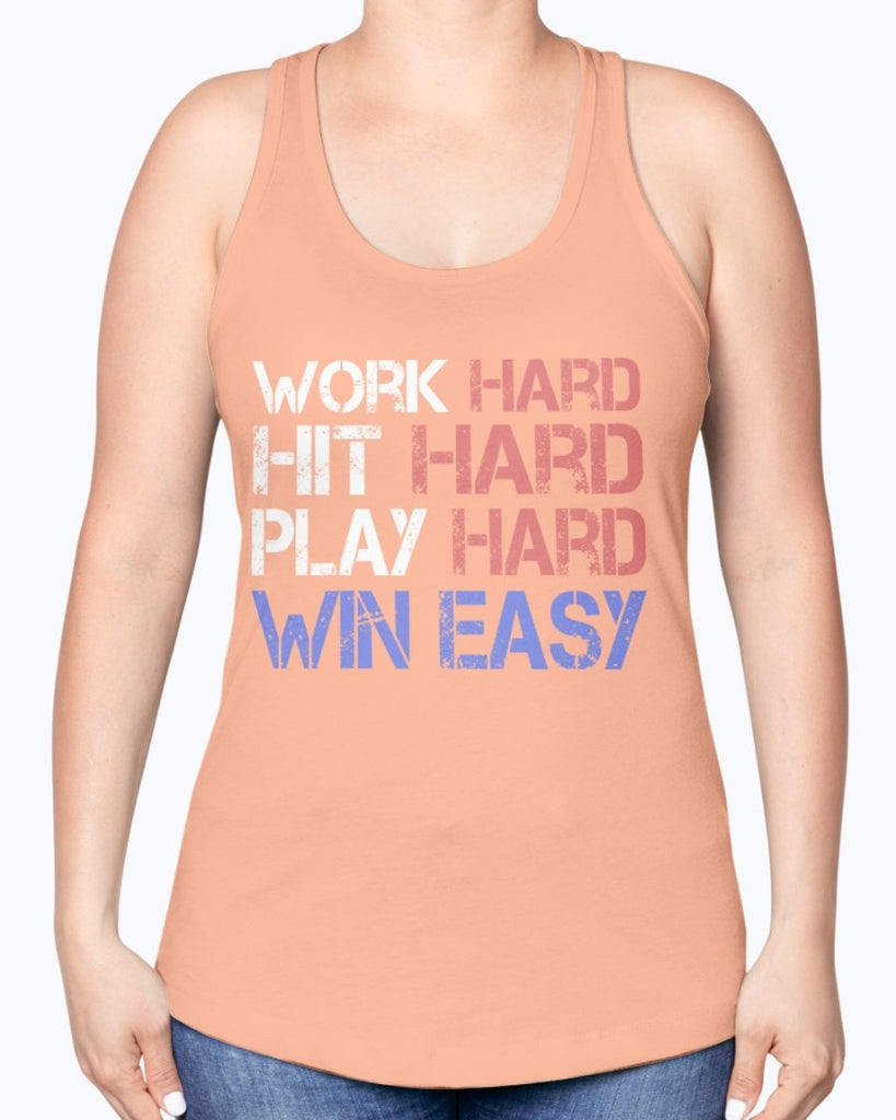 Work, Hit, Play hard, win easy - Sports- Racerback Tank