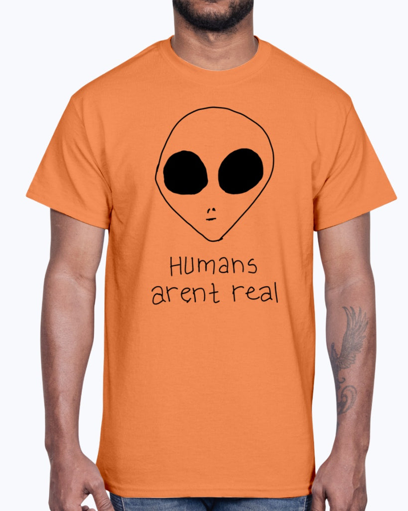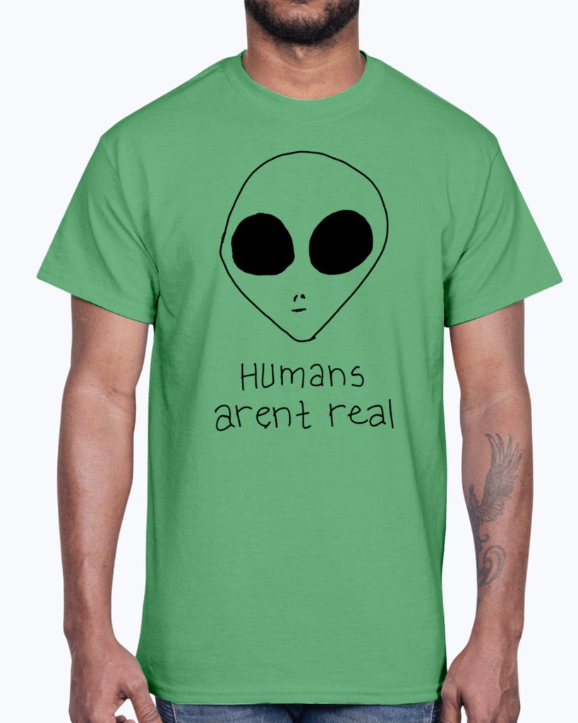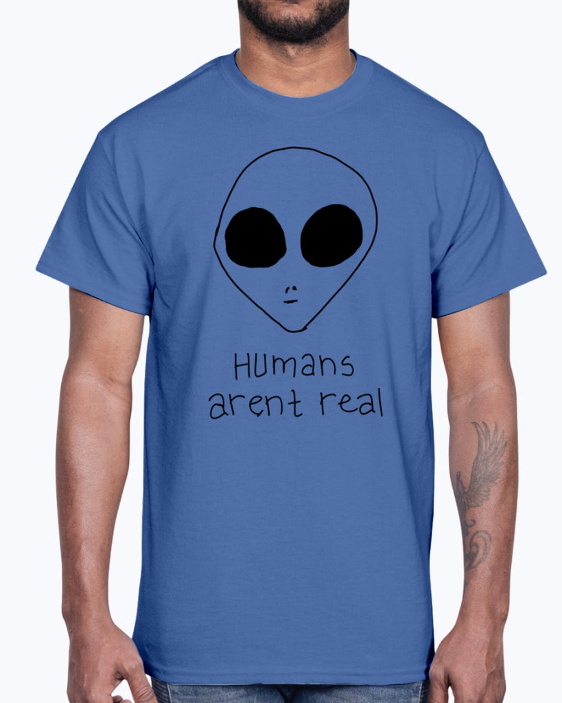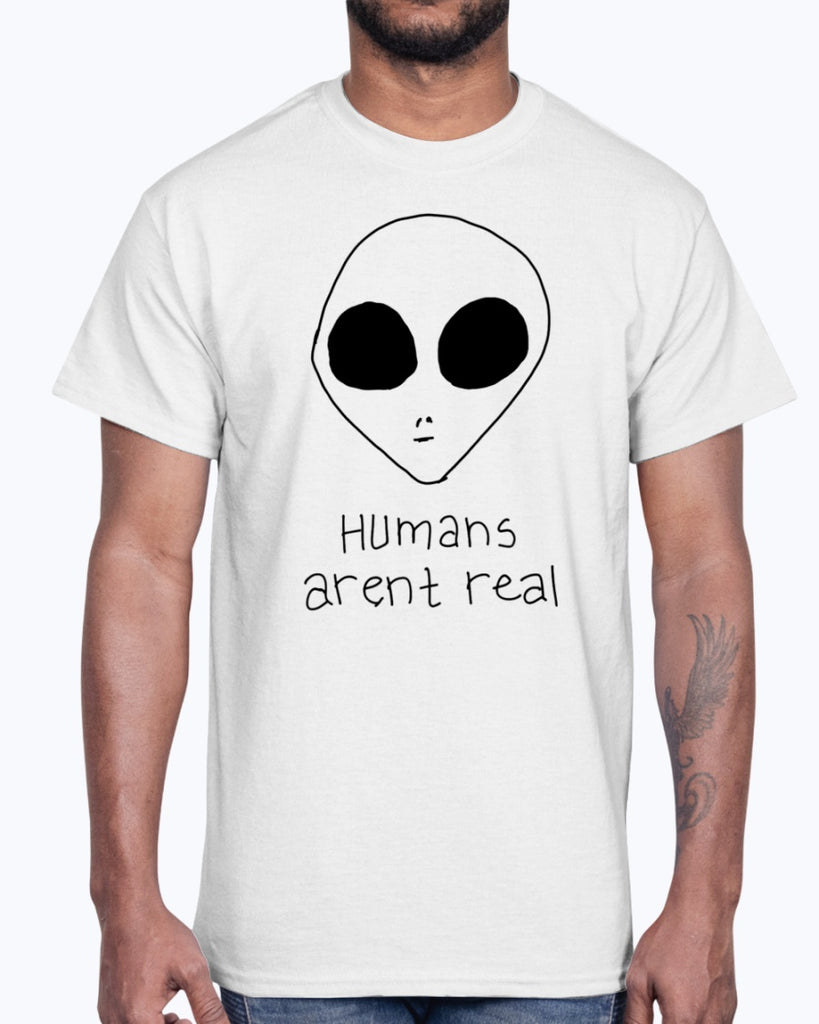 google-site-verification=jVrHOkW2AsgL_ozwUikqFQE6-Ke6U43Z8aLcUbXT5TE Humans arent real- Concept Art - Cotton Tee – Tshirt Unlimited