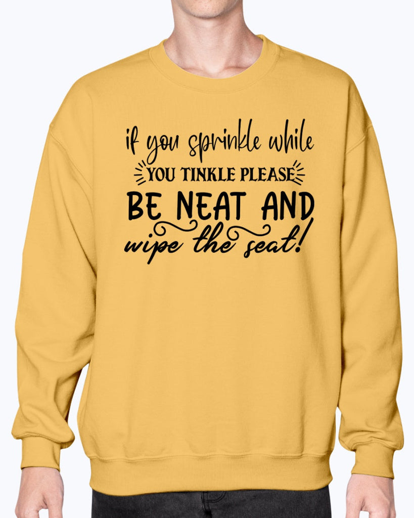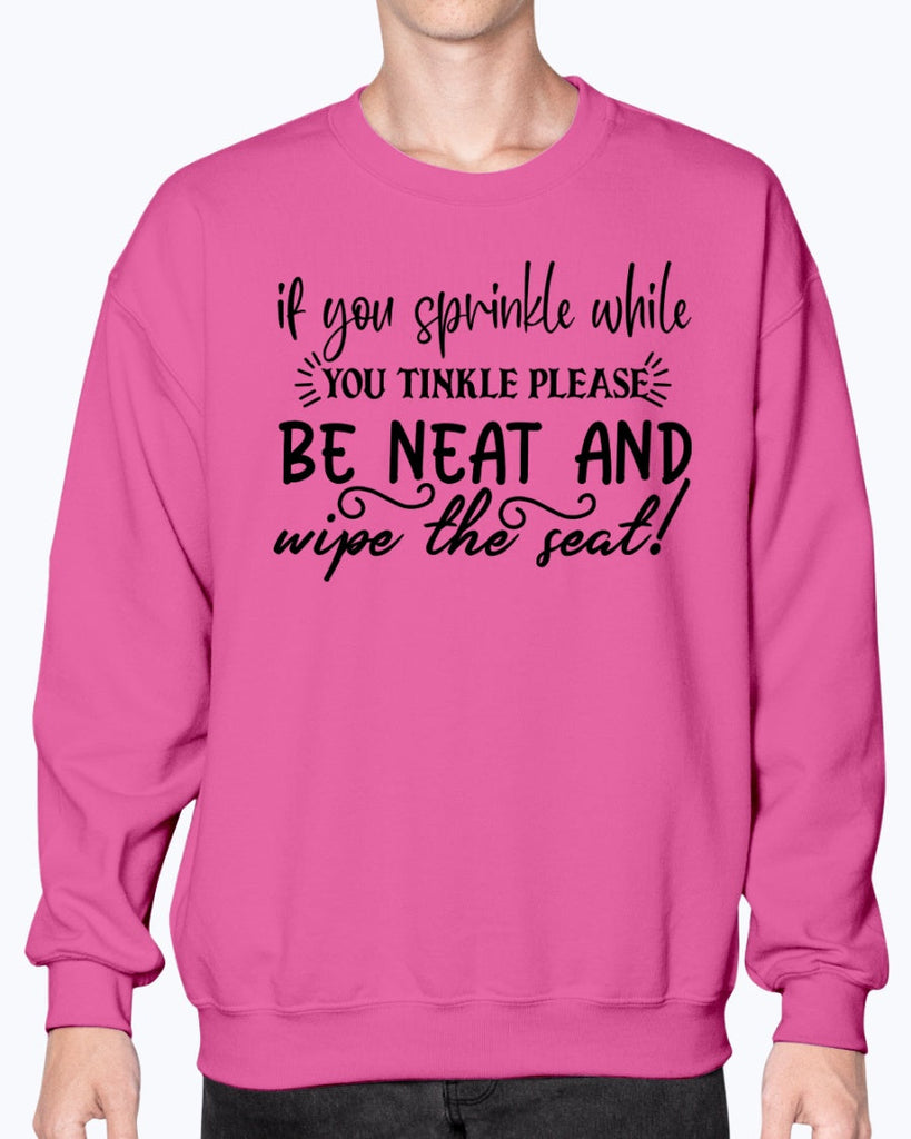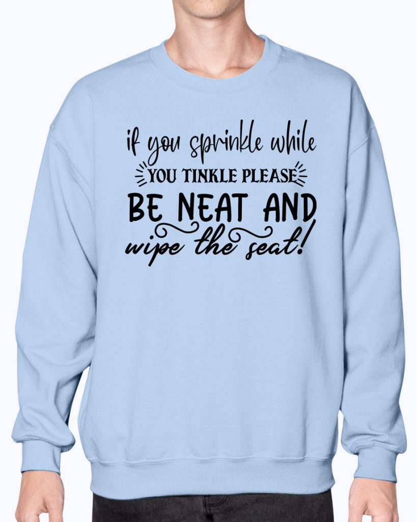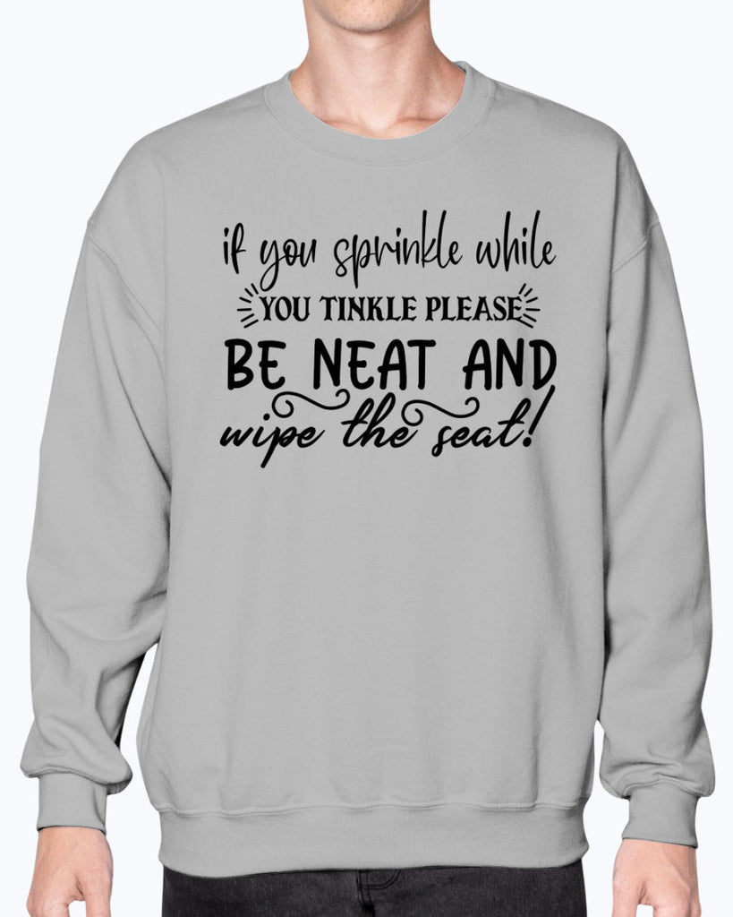 if you sprinkle while you linkle please be neat and wipe the seat!-Bathroom Sweatshirt - Crew