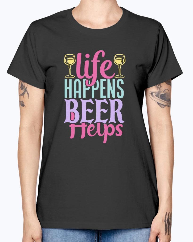 life happens beer helps -beer - Missy T-Shirt