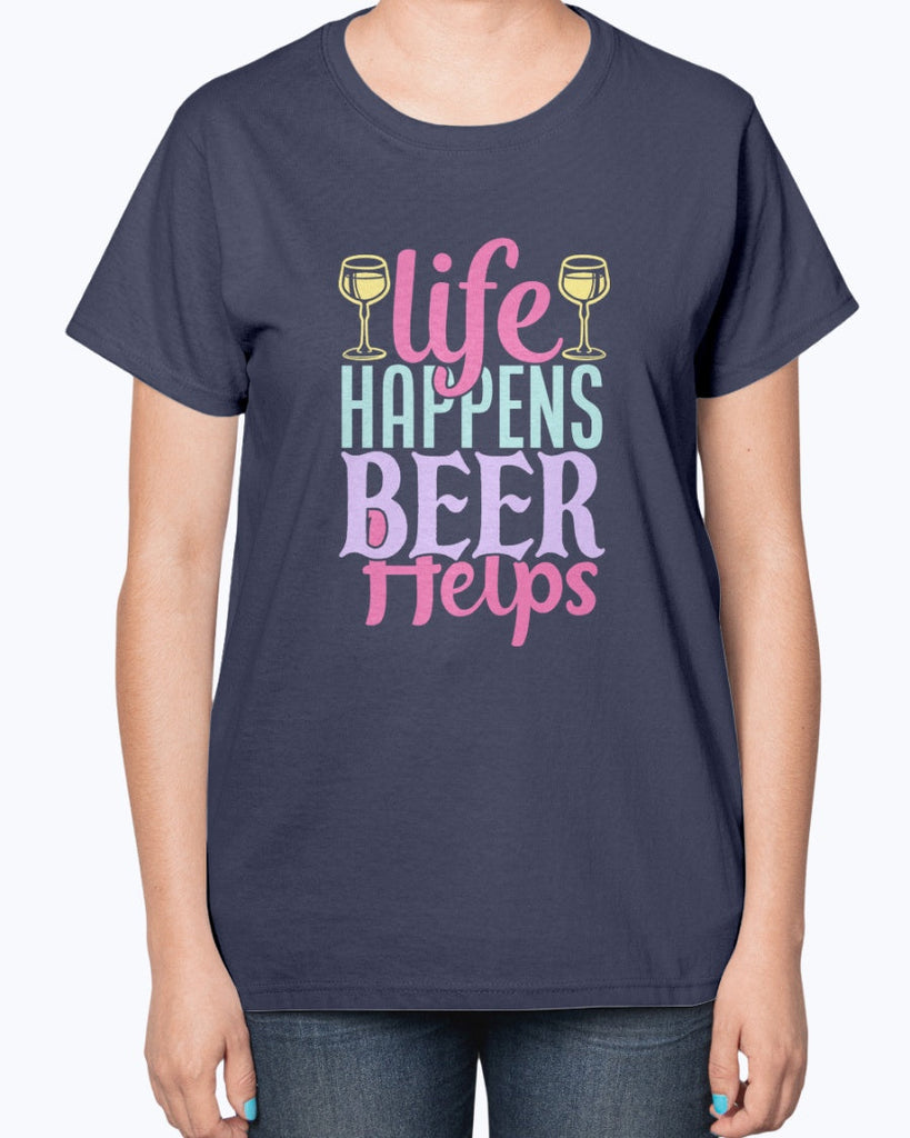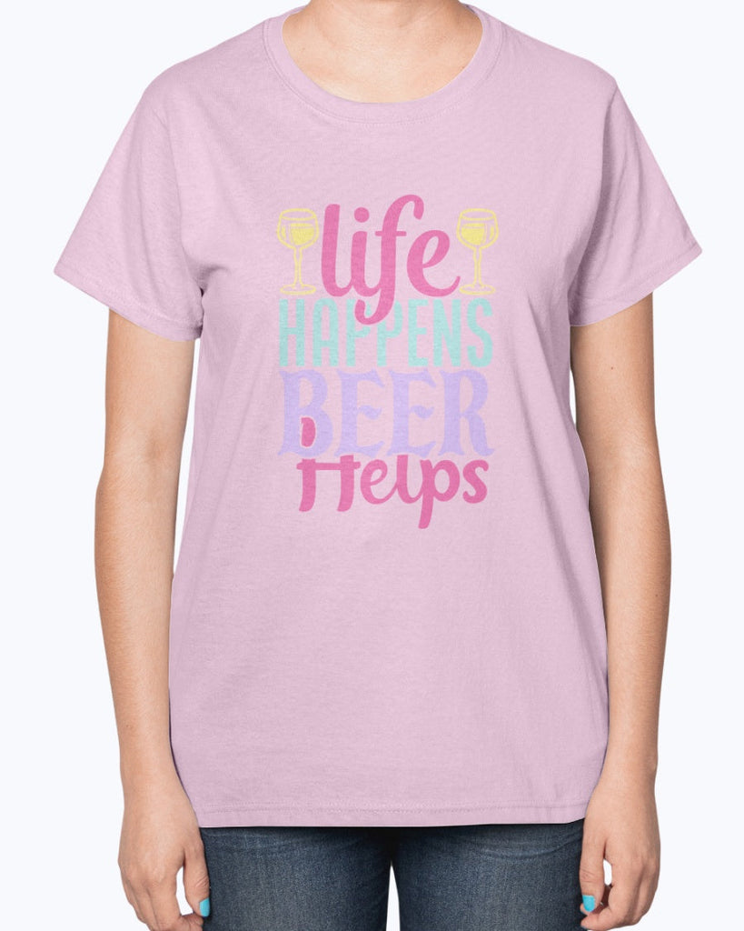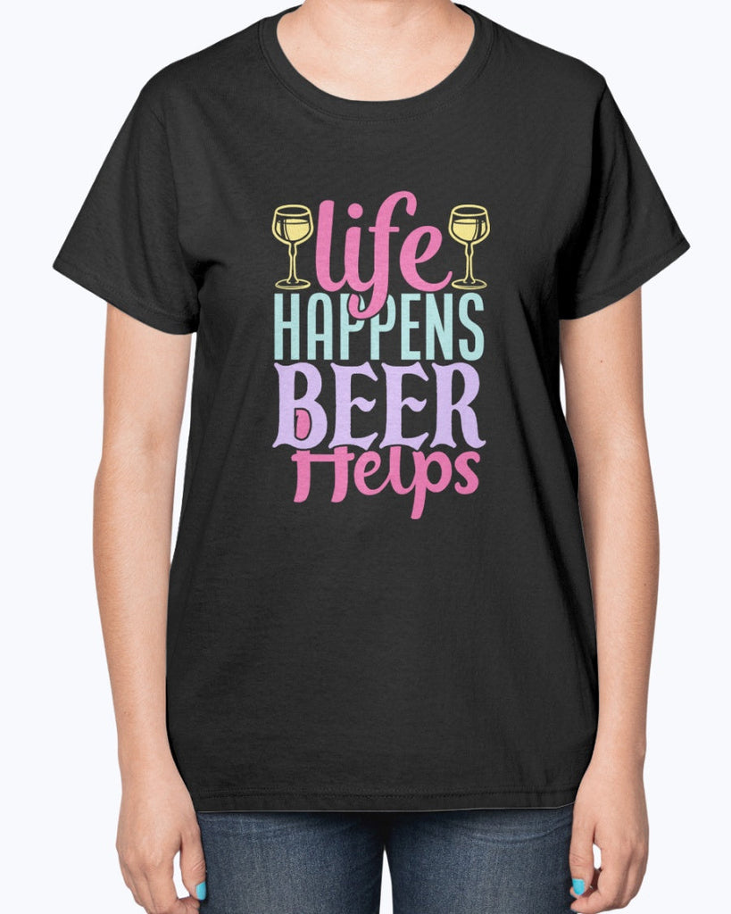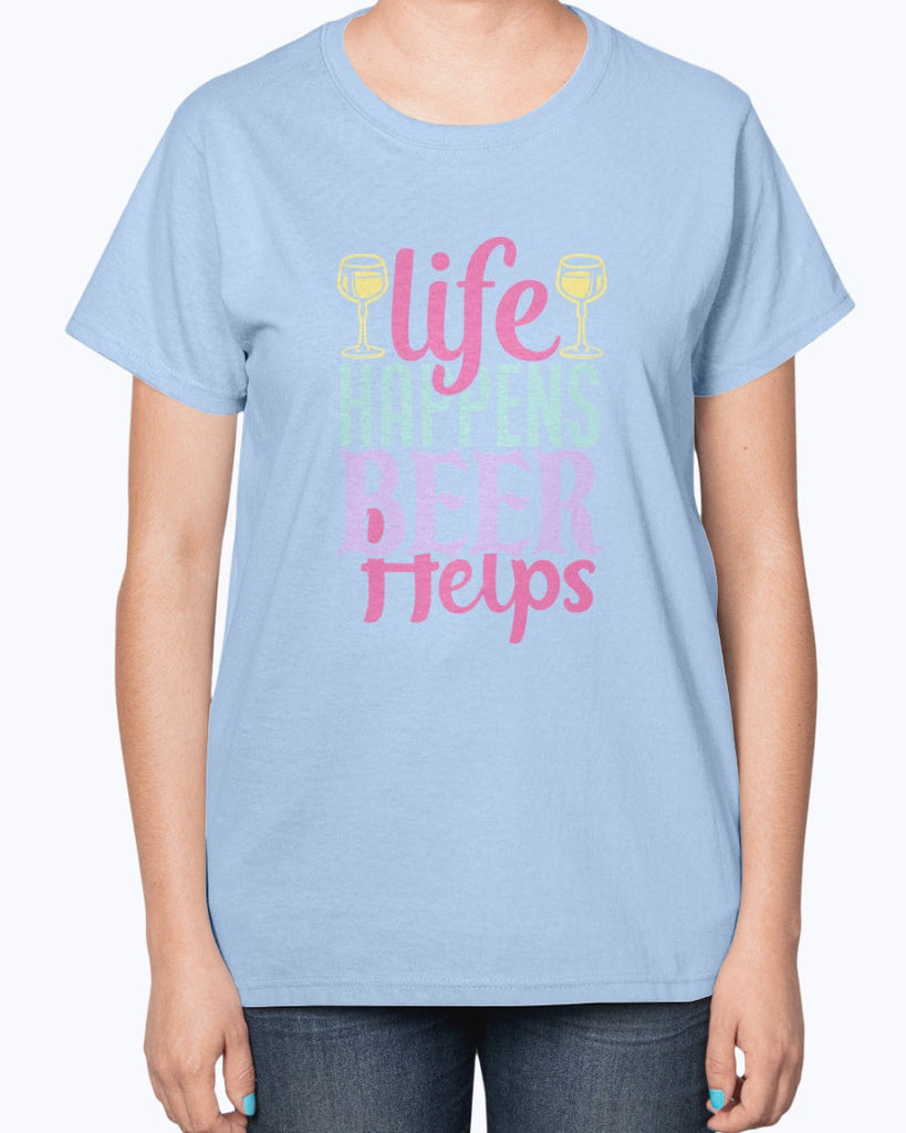 google-site-verification=jVrHOkW2AsgL_ozwUikqFQE6-Ke6U43Z8aLcUbXT5TE life happens beer helps -beer - Ladies T-Shirt – Tshirt Unlimited