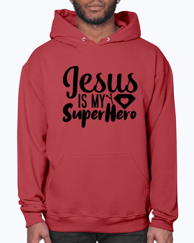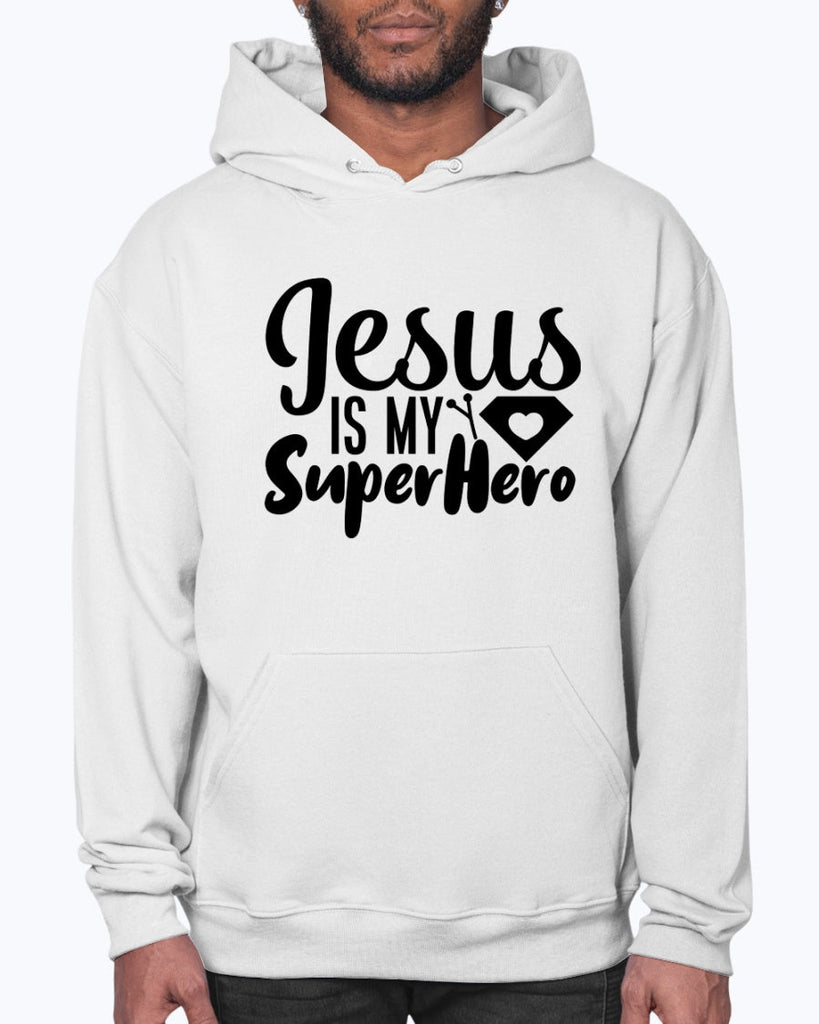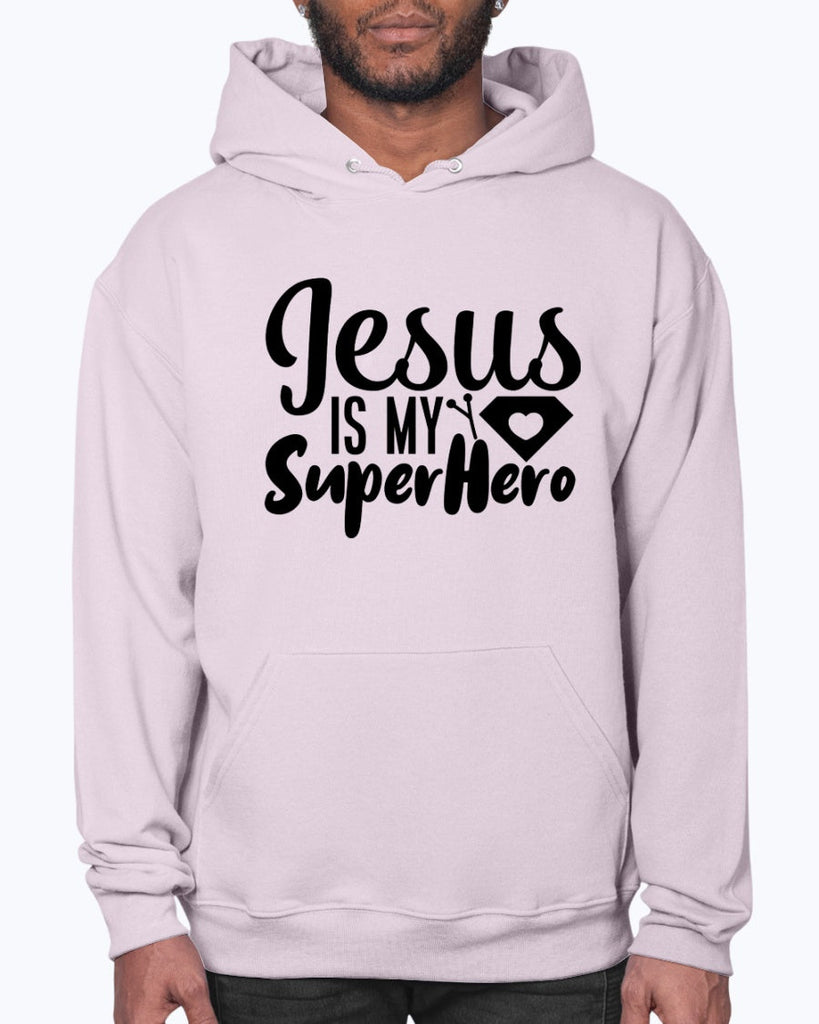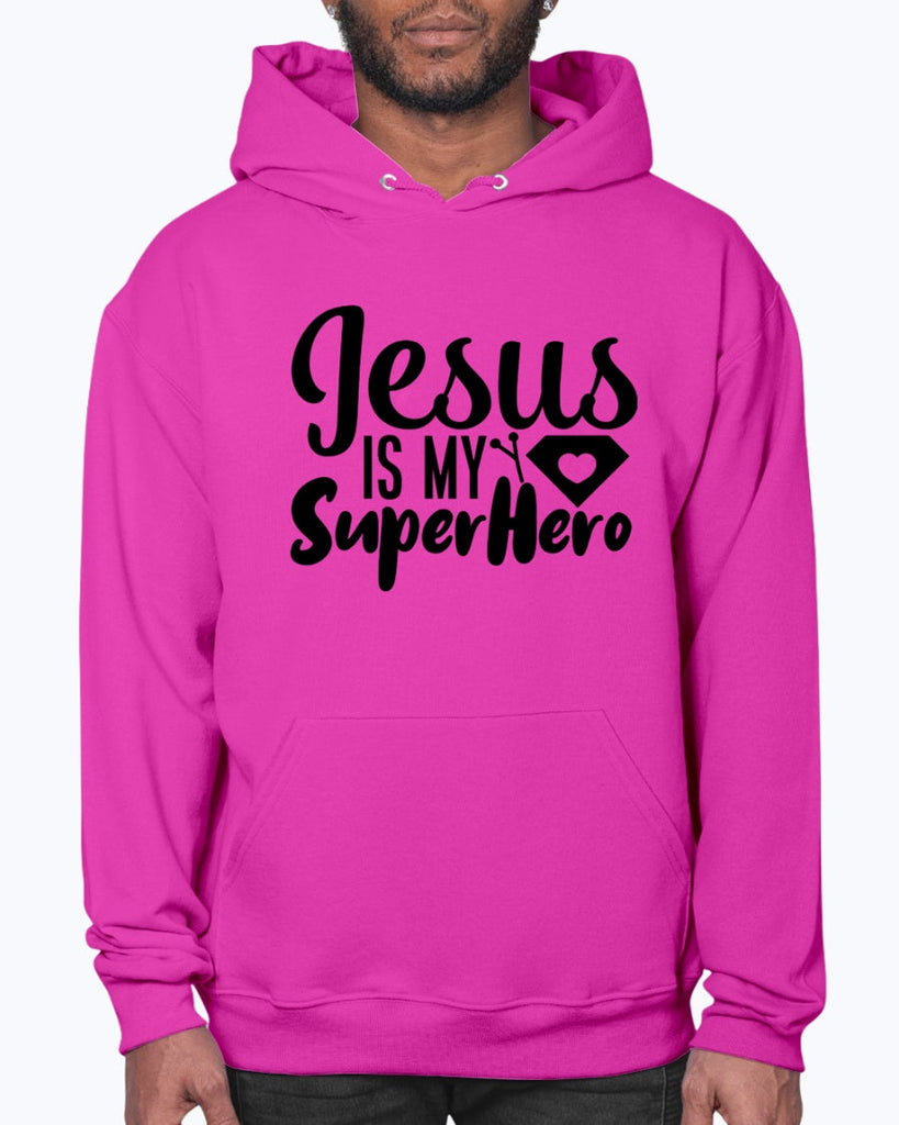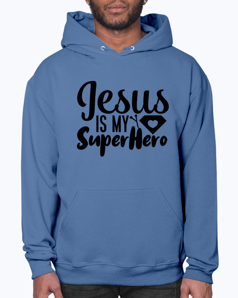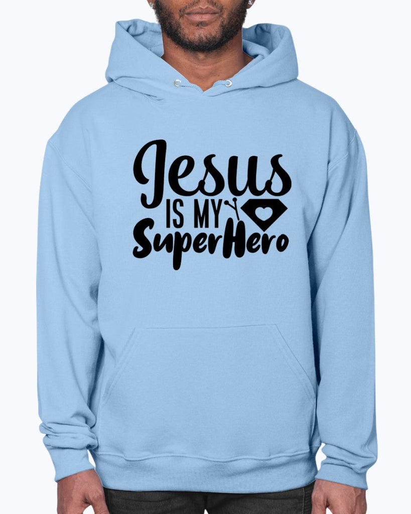 Jesus is My Super Hero- Blessed- Hoodie Unisex, machine washable, front pouch pocket - 8 oz, 50% cotton/50% polyester NuBlendŽ preshrunk fleece