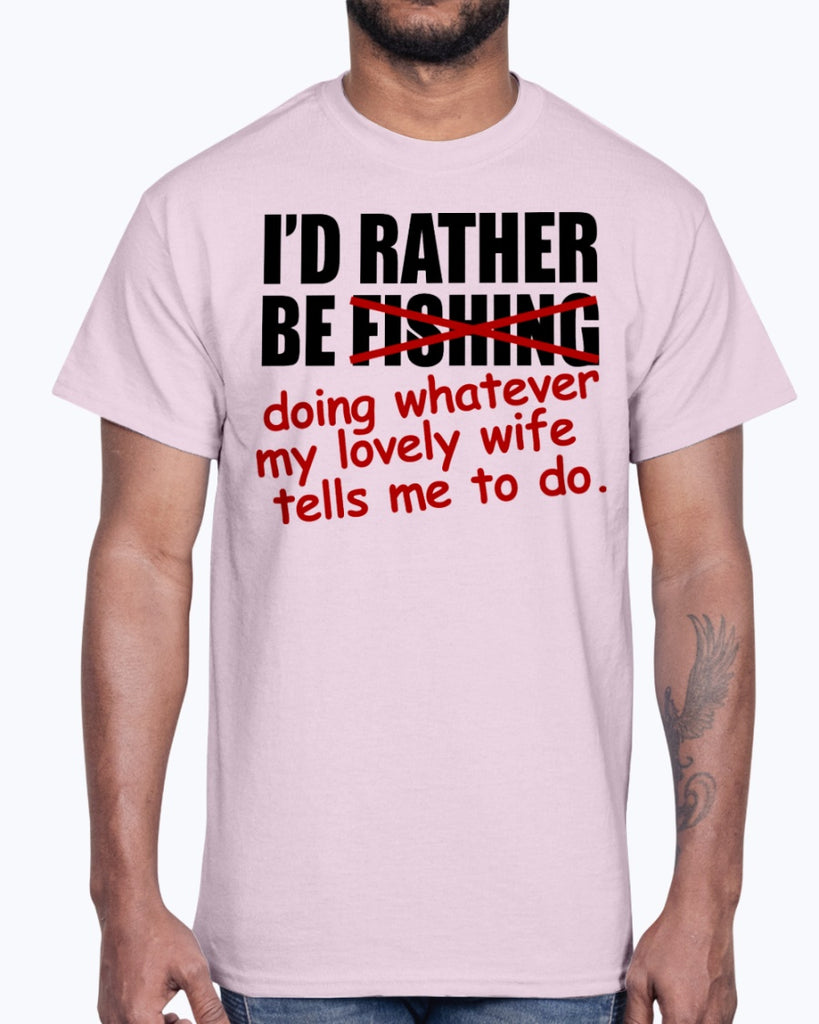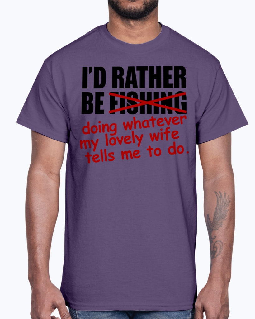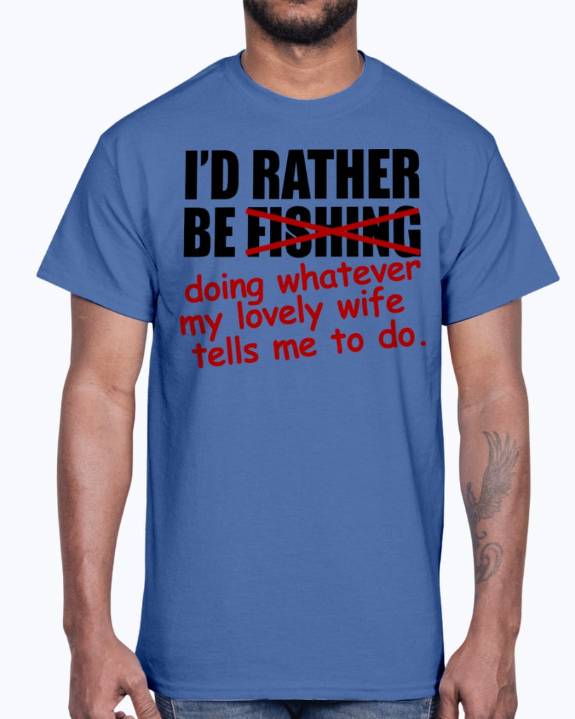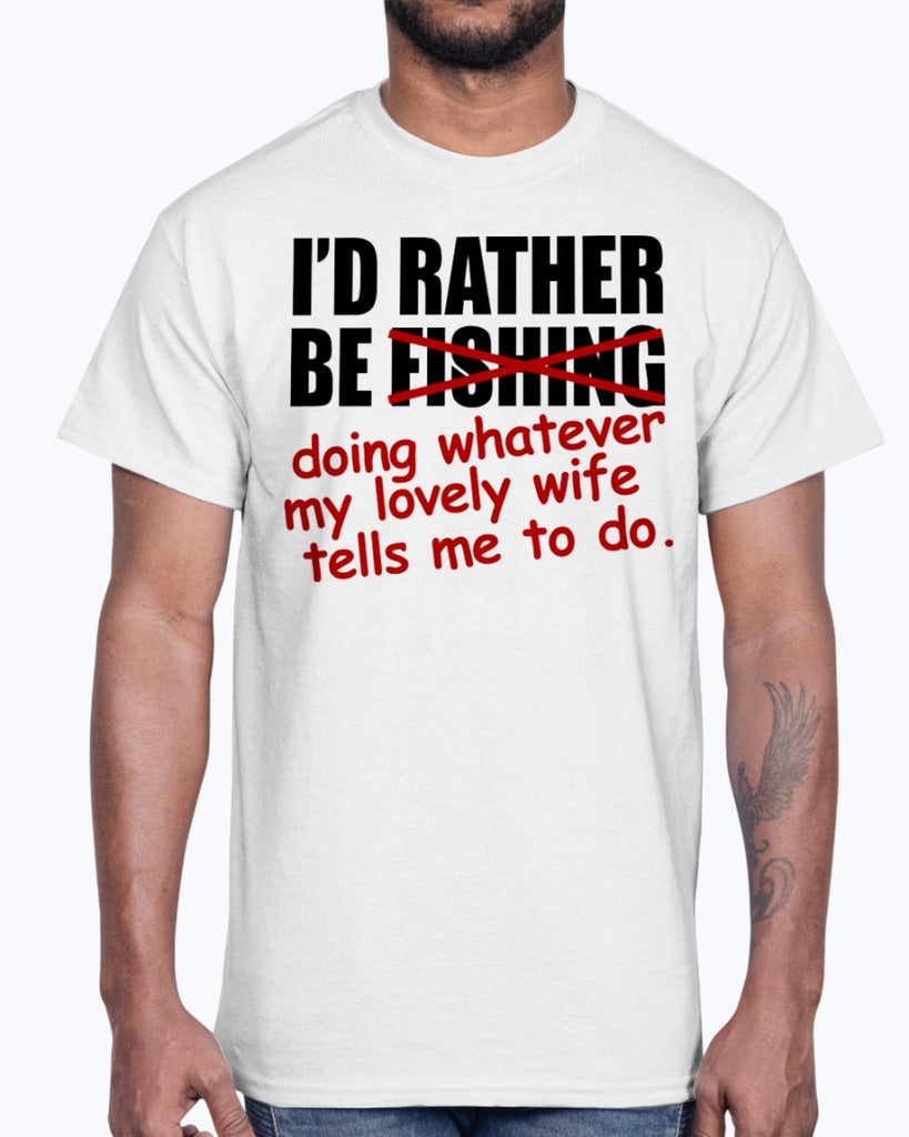 google-site-verification=jVrHOkW2AsgL_ozwUikqFQE6-Ke6U43Z8aLcUbXT5TE Id rather be doing what my wife tells me - Fishing- Cotton Tee – Tshirt Unlimited