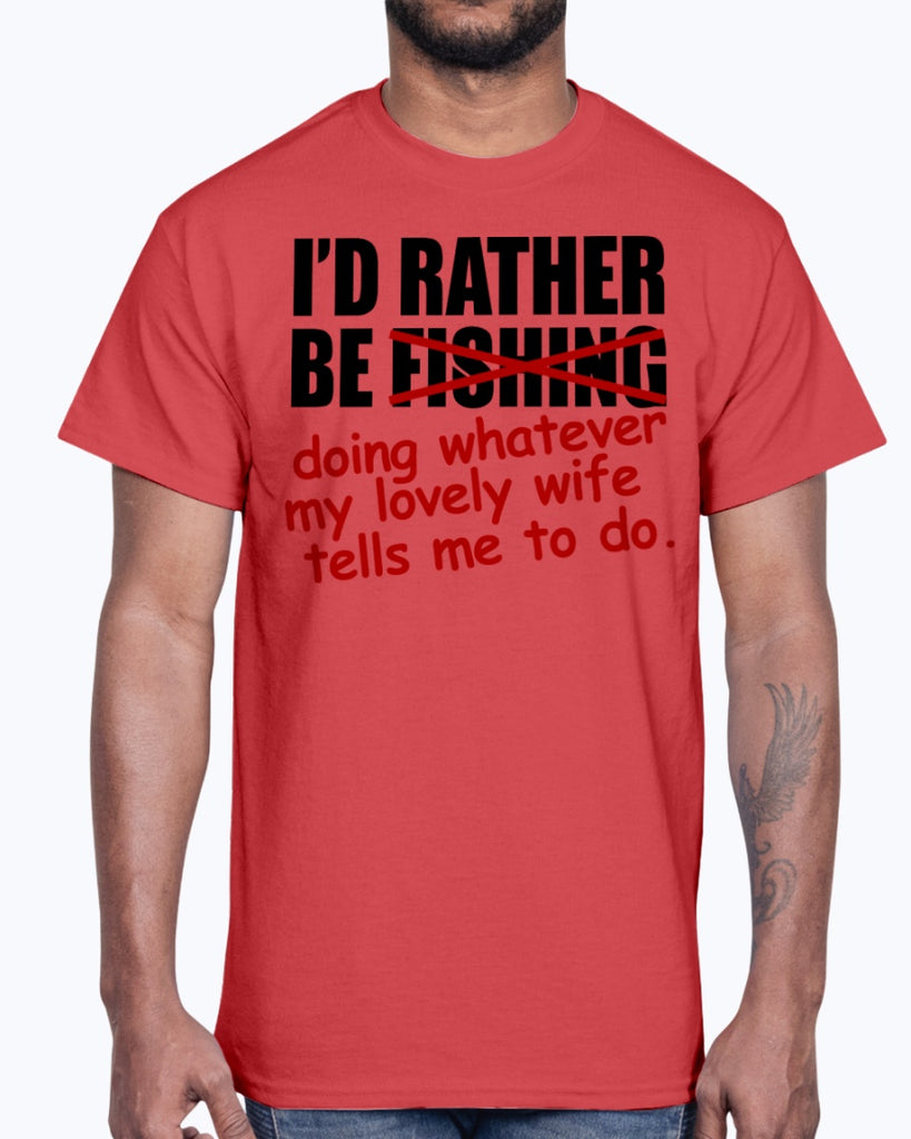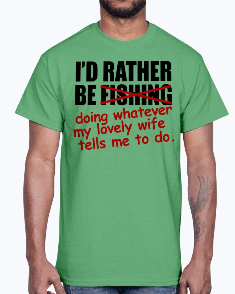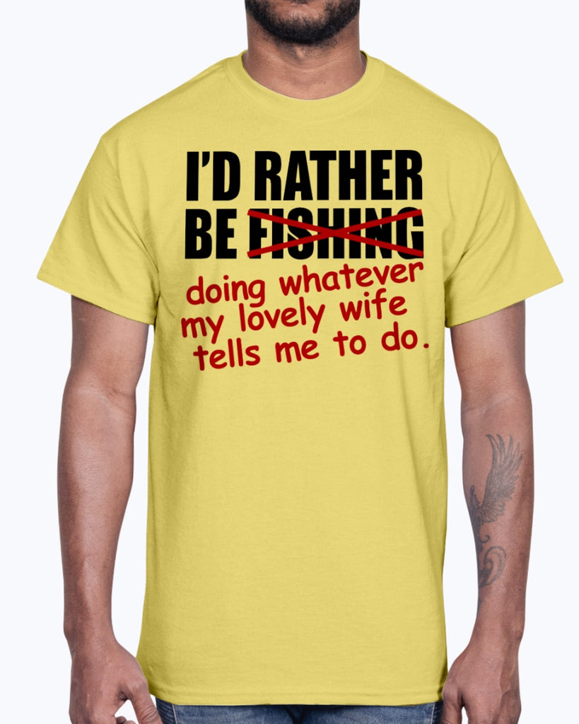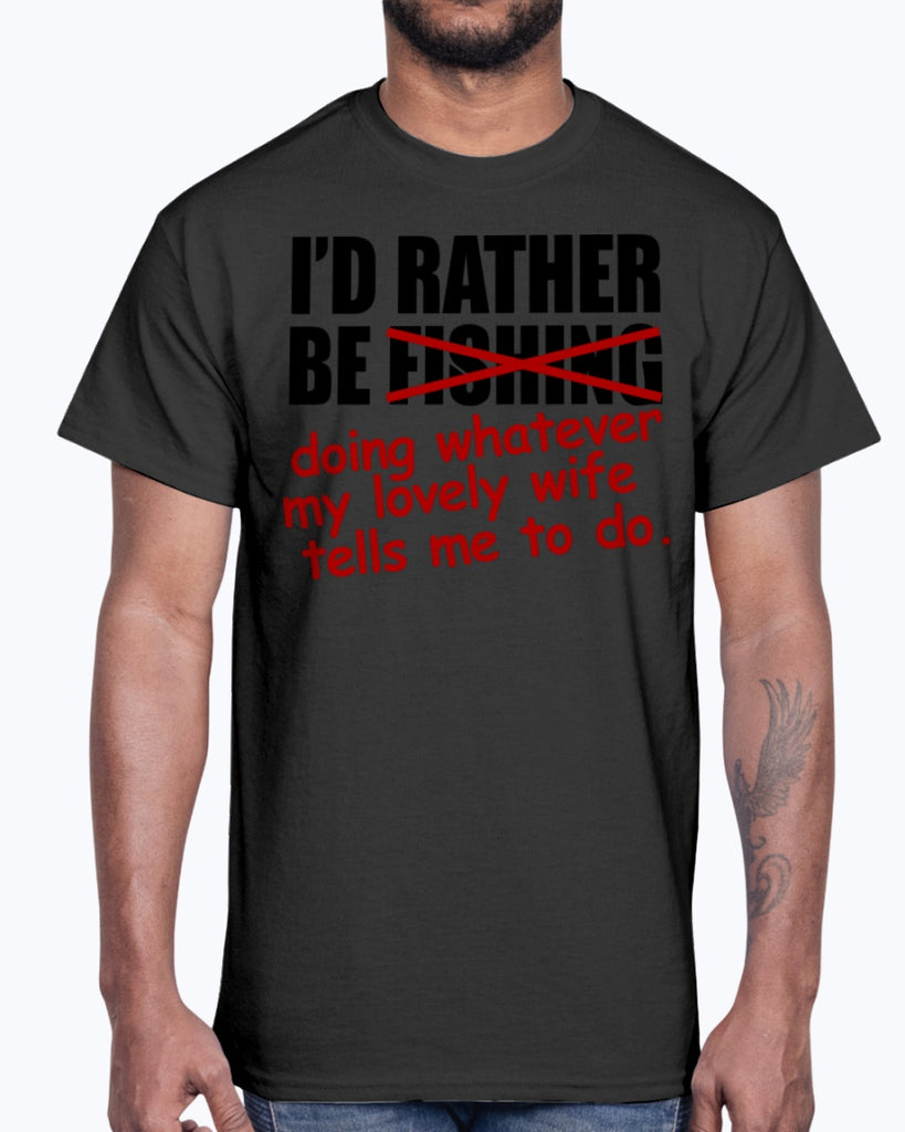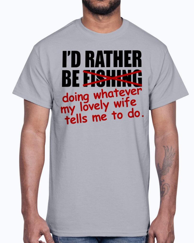 google-site-verification=jVrHOkW2AsgL_ozwUikqFQE6-Ke6U43Z8aLcUbXT5TE Id rather be doing what my wife tells me - Fishing- Cotton Tee – Tshirt Unlimited