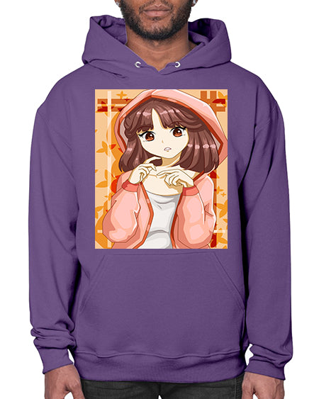 Beautiful and cute girl brown hair with jacket 81# - anime- Hoodie