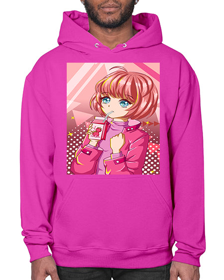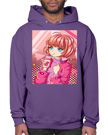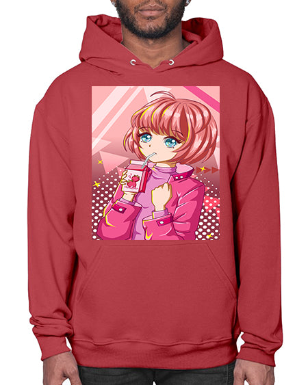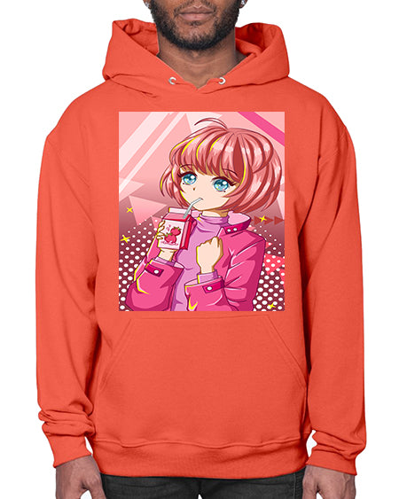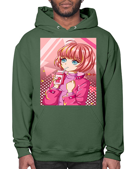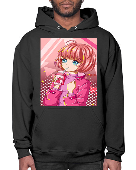 Beautiful and cute girl with strawberry milk 76# - anime- Hoodie