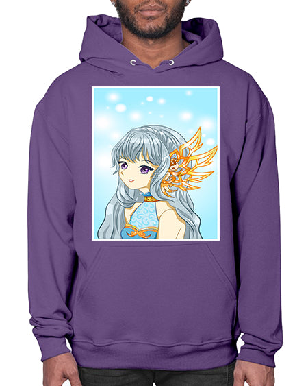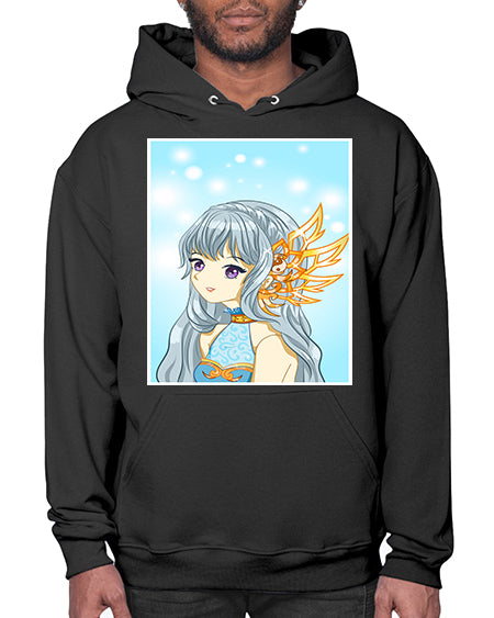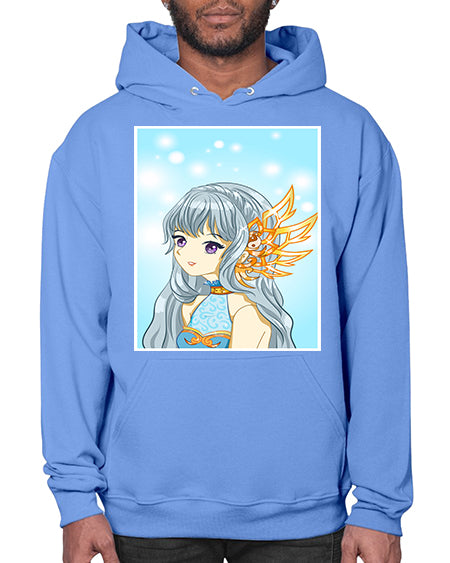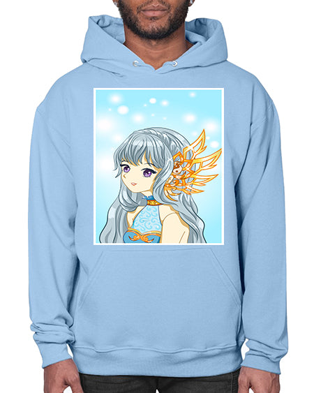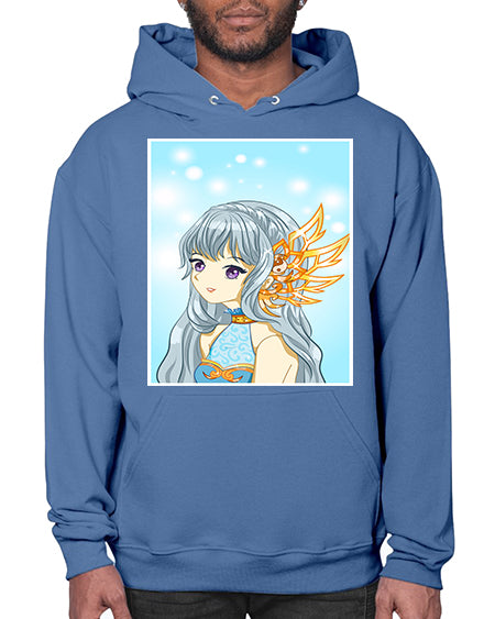 Beautiful and cute queen long blue hair with gold crown 27# - anime- Hoodie
