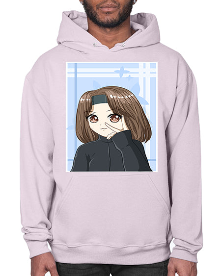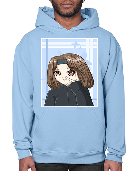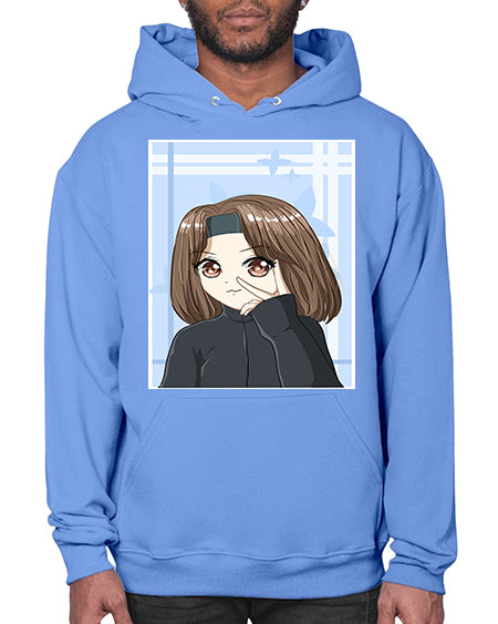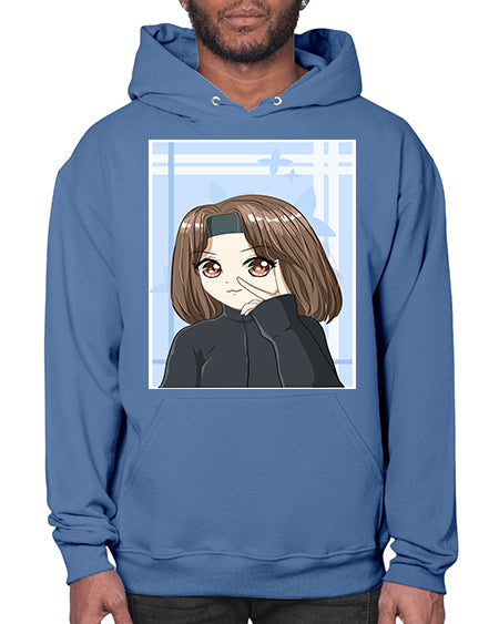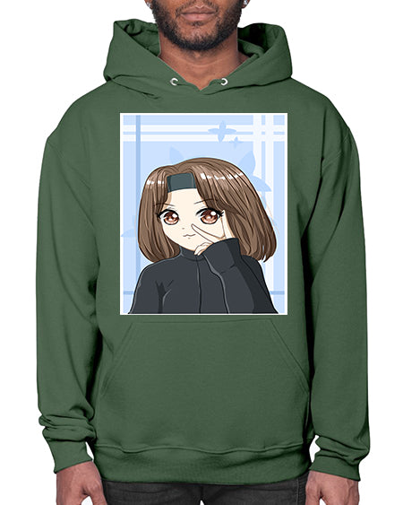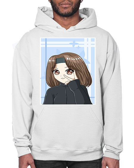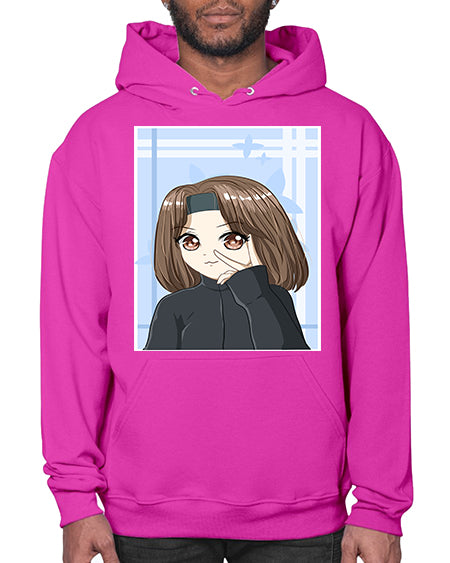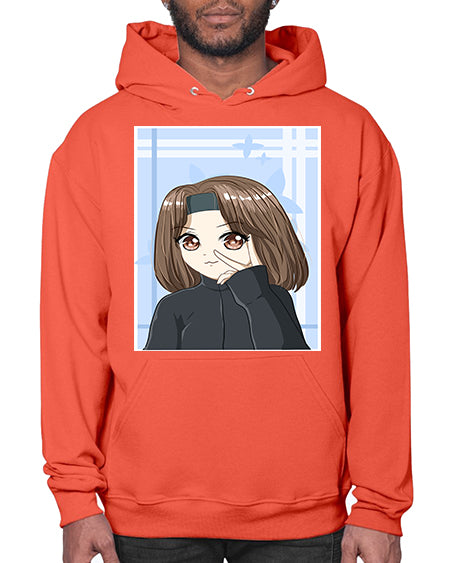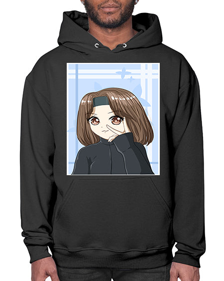 Beautiful and happy girl brown short hair with black jacket 89# - anime- Hoodie