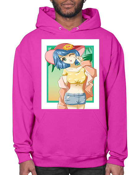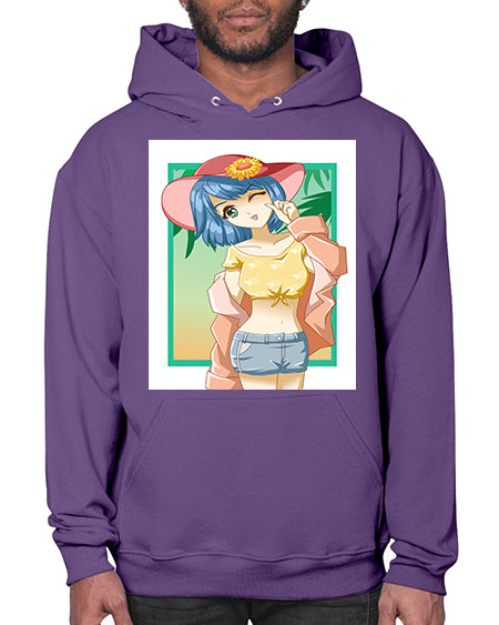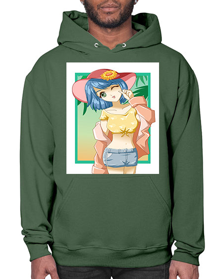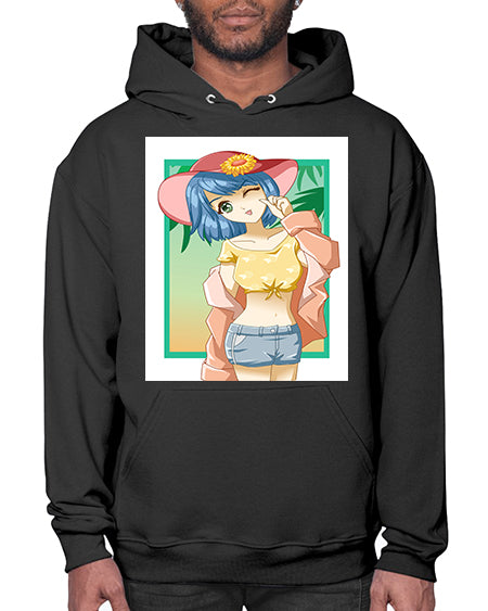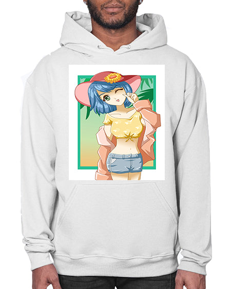 Beautiful and sexy girl on the beach with cute hat in summer 1# - anime- Hoodie