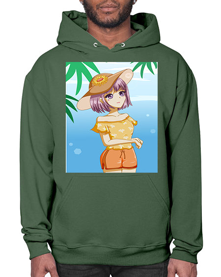 Beautiful girl in summer with sunflower 116# - anime- Hoodie