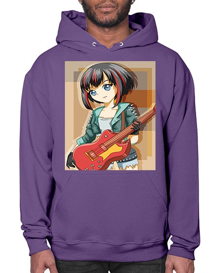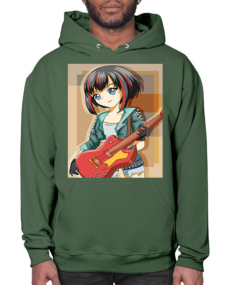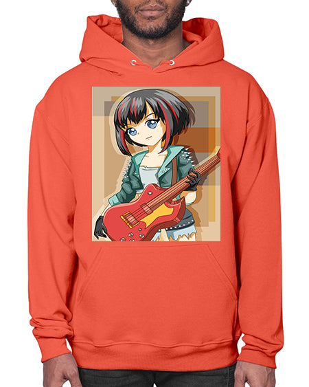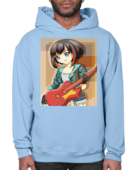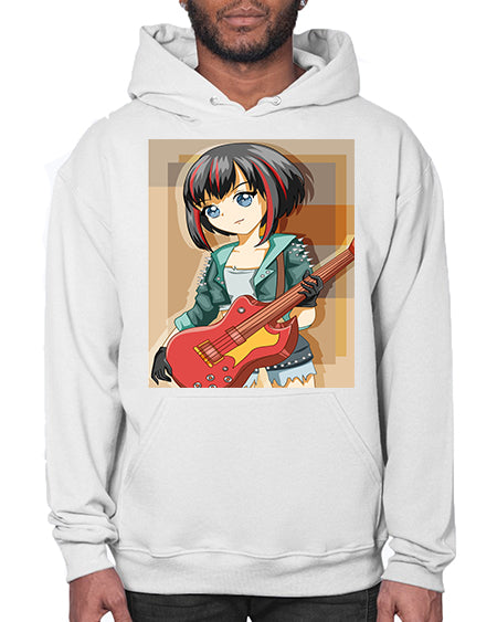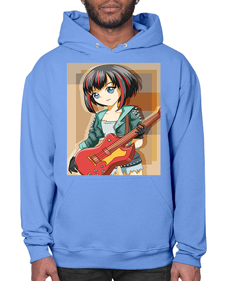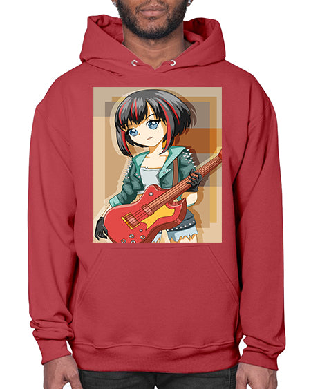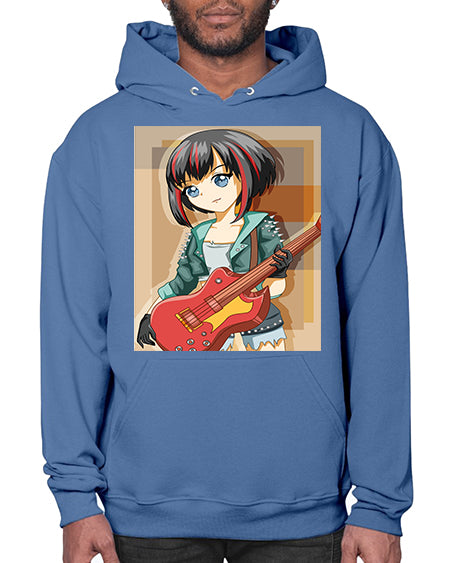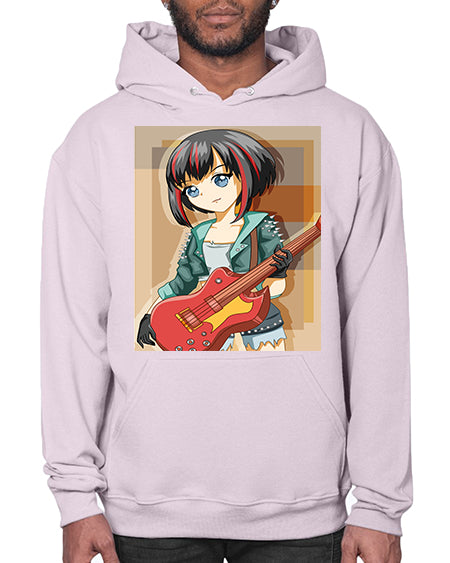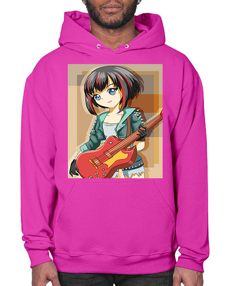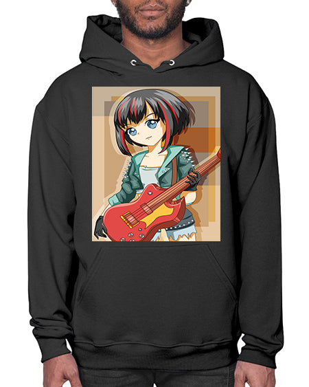 Beautiful rock girl with bass guitar perform 173# - anime- Hoodie