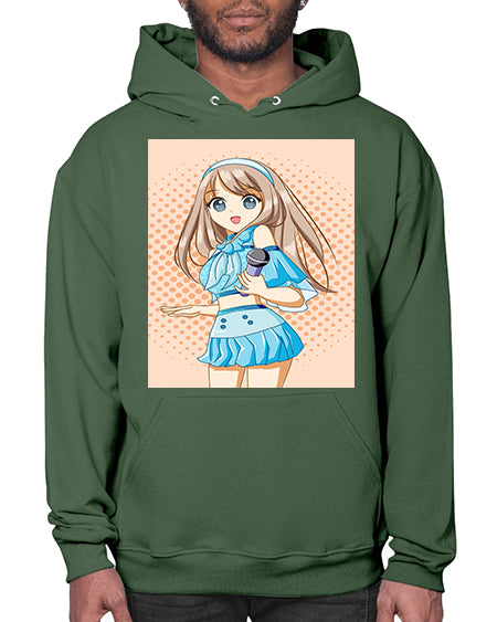 Beautiful singer woman with blue dress 179# - anime- Hoodie