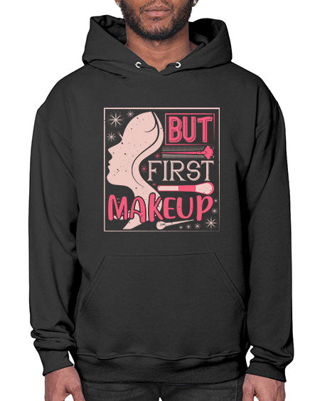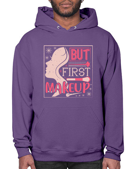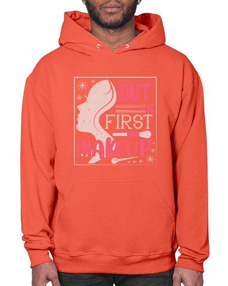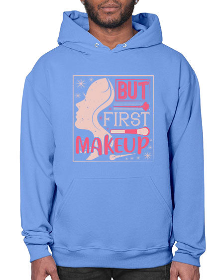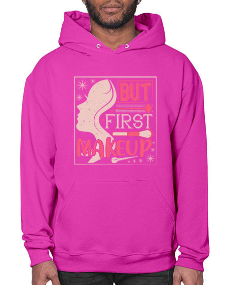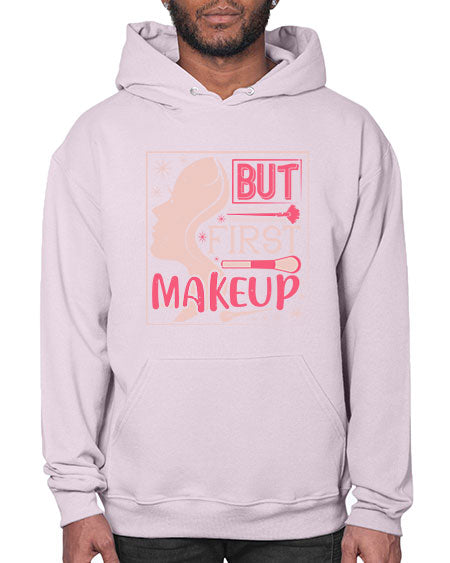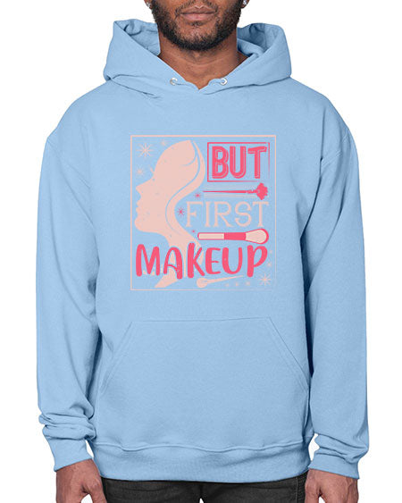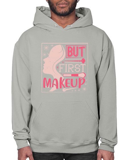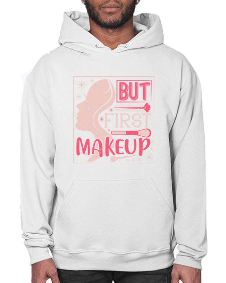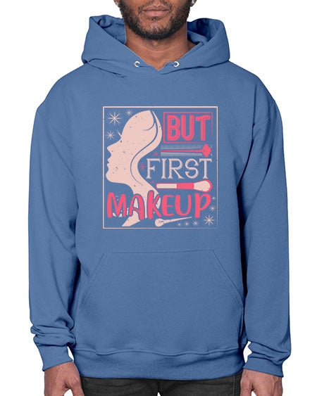 But first makeup Style 260# - beauty - fashion - Hoodie Unisex, machine washable, front pouch pocket - 8 oz, 50% cotton/50% polyester NuBlendŽ preshrunk fleece
