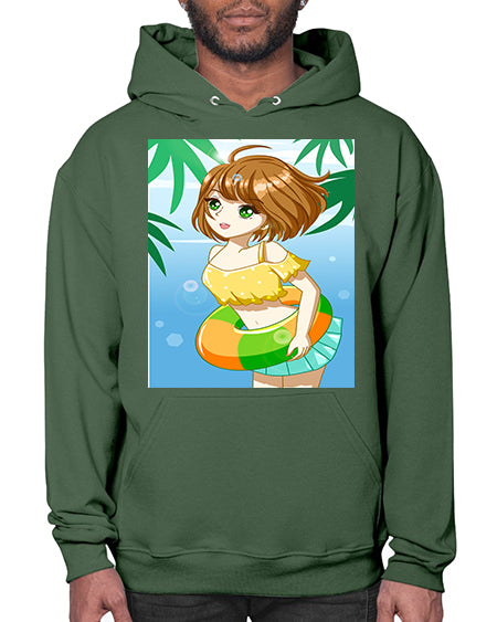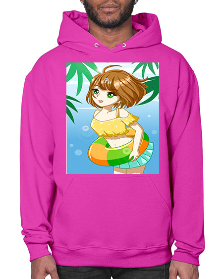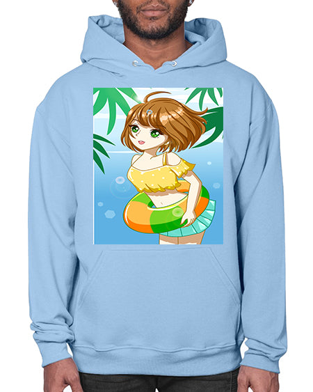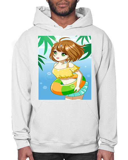 Cute and beautiful girl swimming in beach in the summer 176# - anime- Hoodie