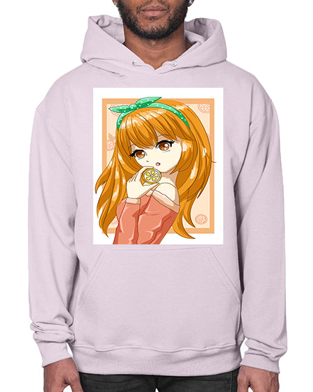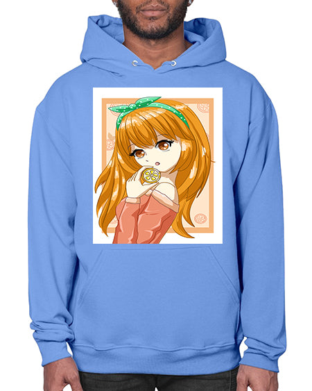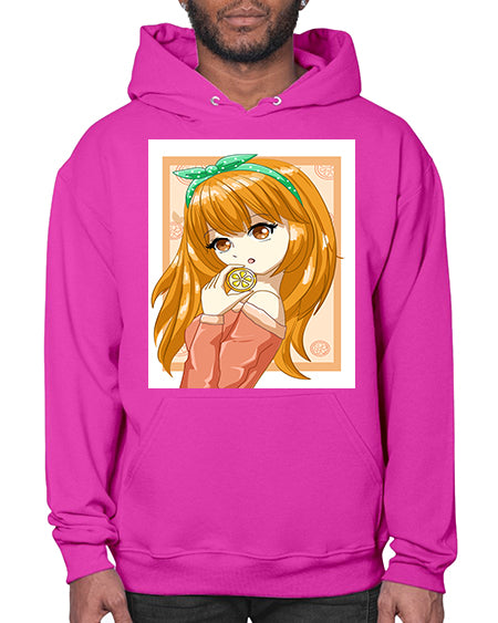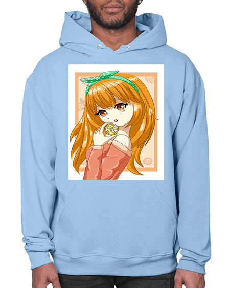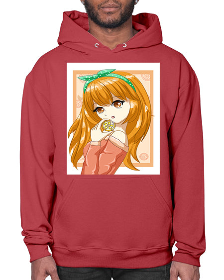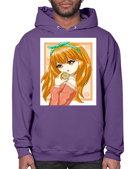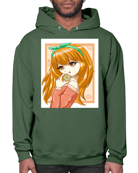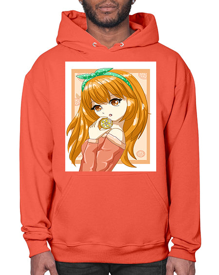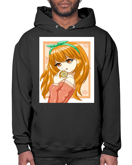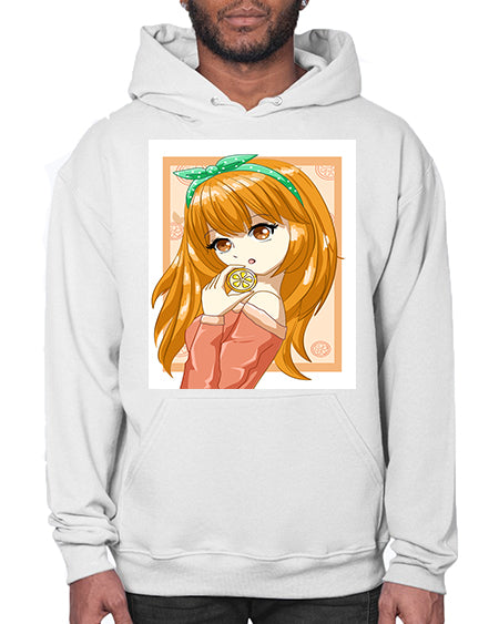 Cute and beautiful girl with orange in the summer 174# - anime- Hoodie