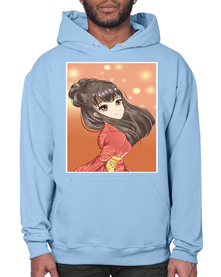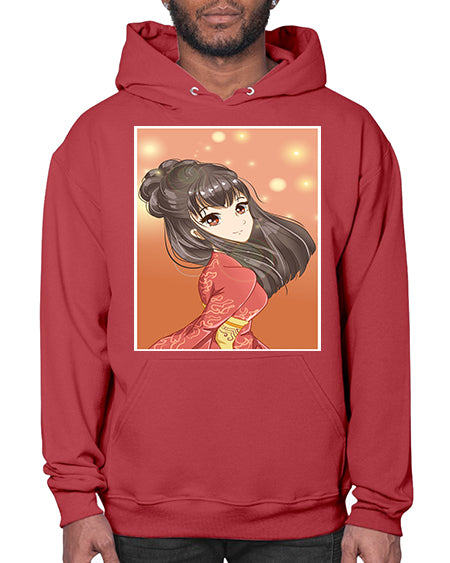 Cute and beautiful girl with red kimono 52# - anime- Hoodie