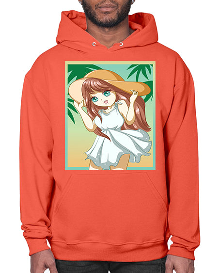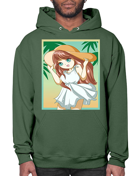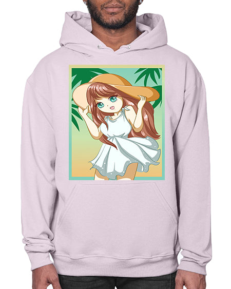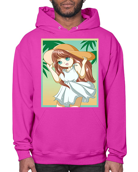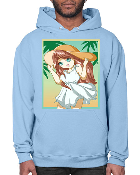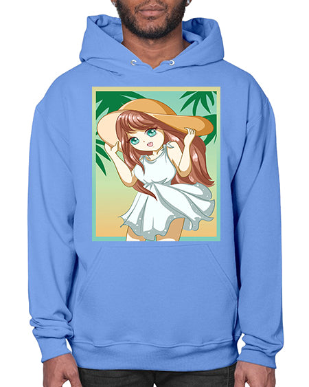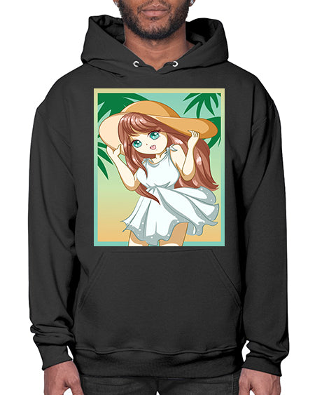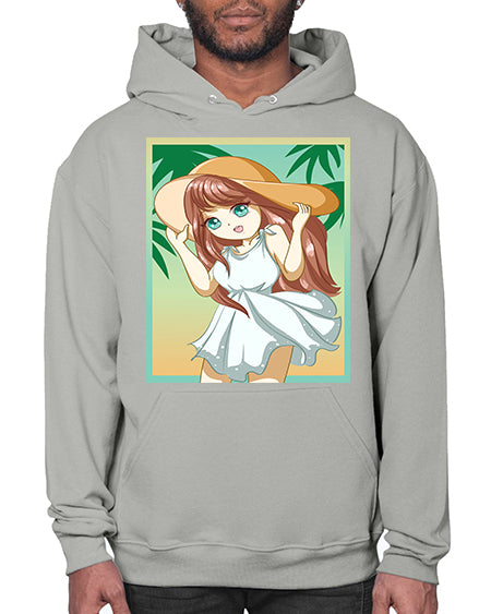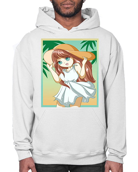Cute and beautiful girl with white dress in beach at summer 162# - anime- Hoodie