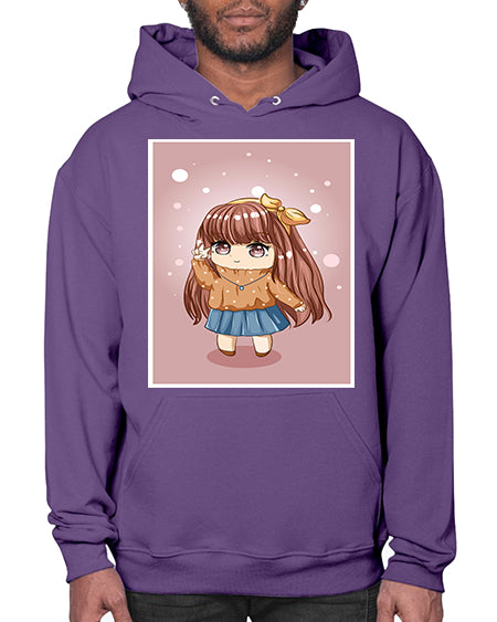 Cute and beautiful little girl long brown hair 149# - anime- Hoodie