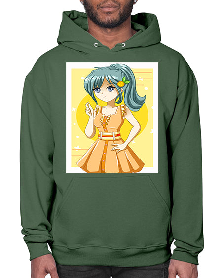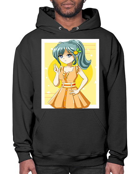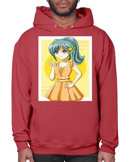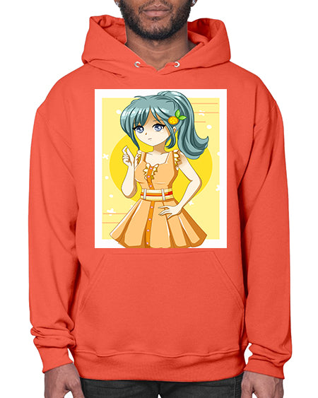 Cute and beautiful orange theme girl in summer 45# - anime- Hoodie