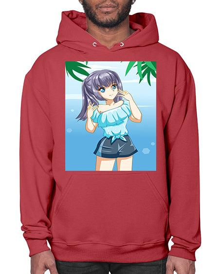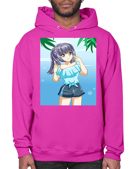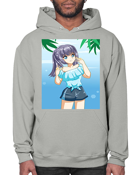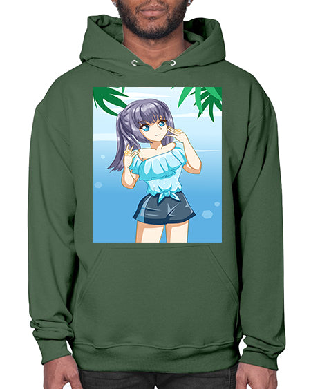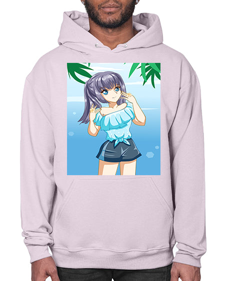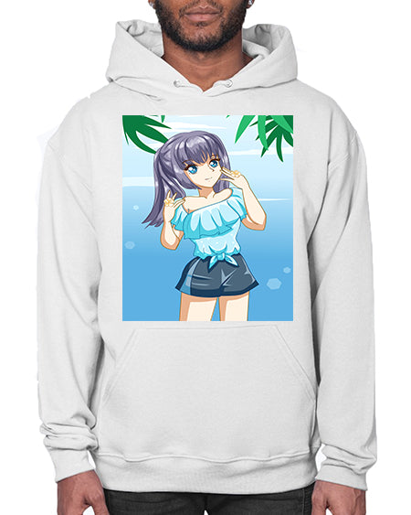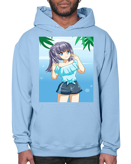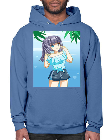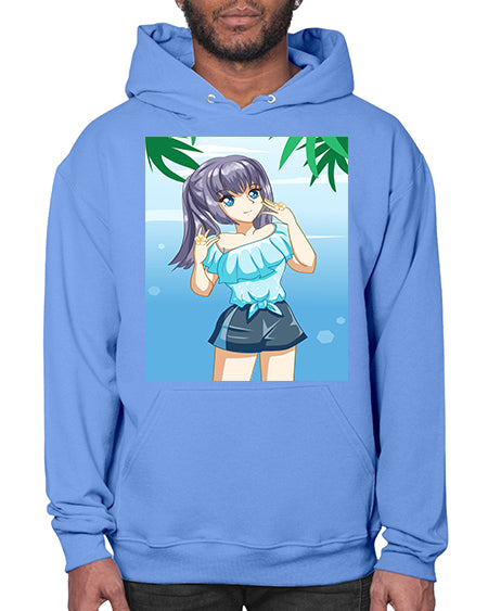Cute and happy girl with blue shirt in summer 125# - anime- Hoodie