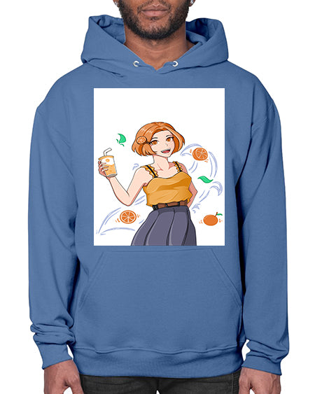 cute anime summer girl with orange juice28# - anime- Hoodie