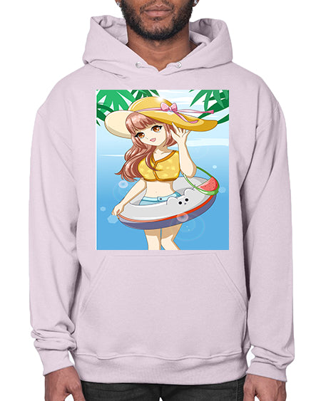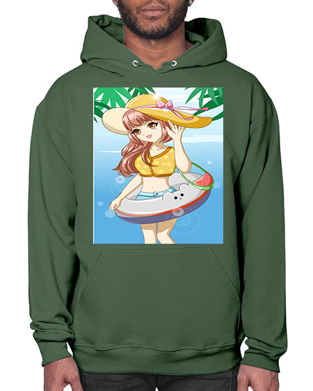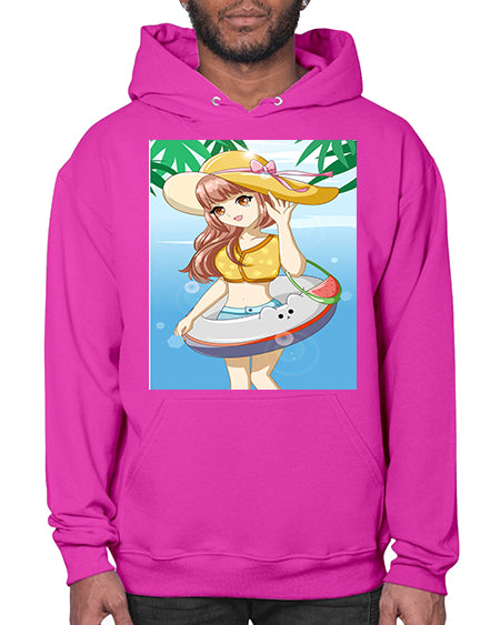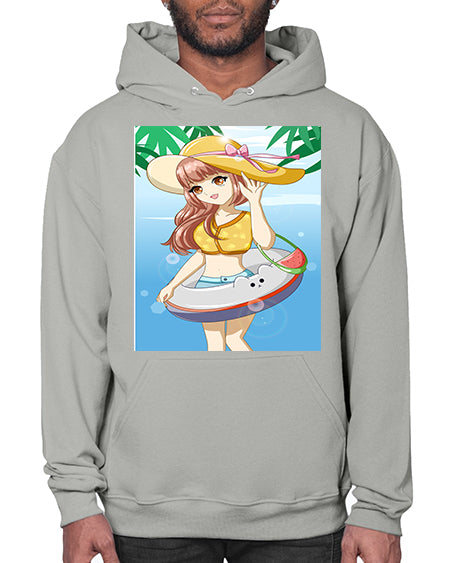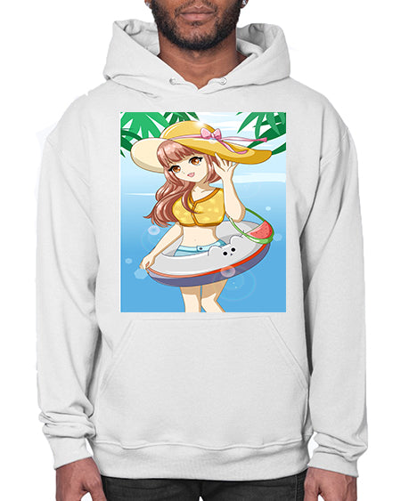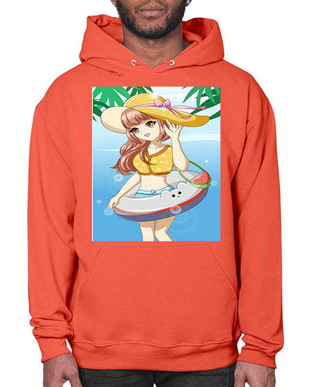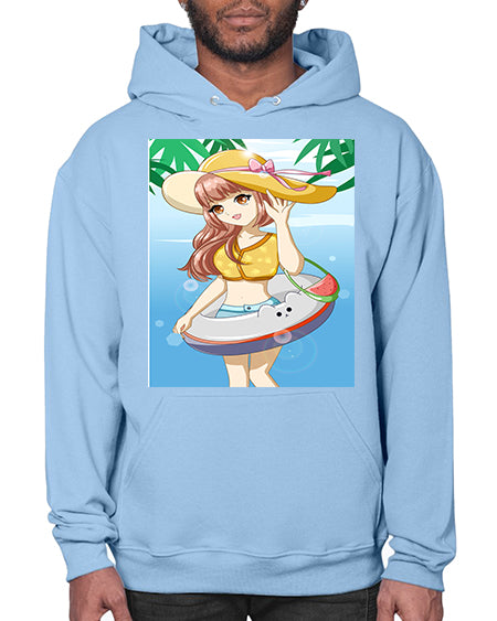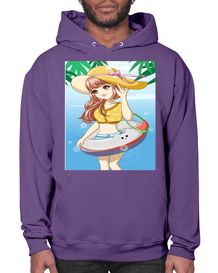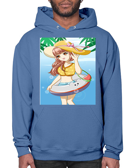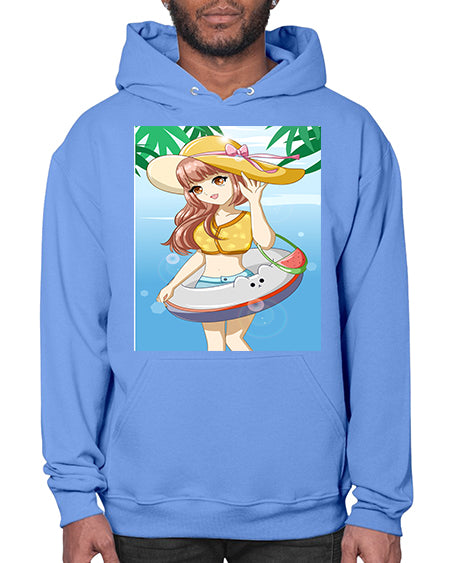 Happy and funny girl in beach with cute buoy in the summer 11# - anime- Hoodie