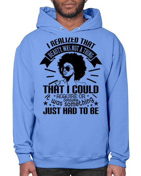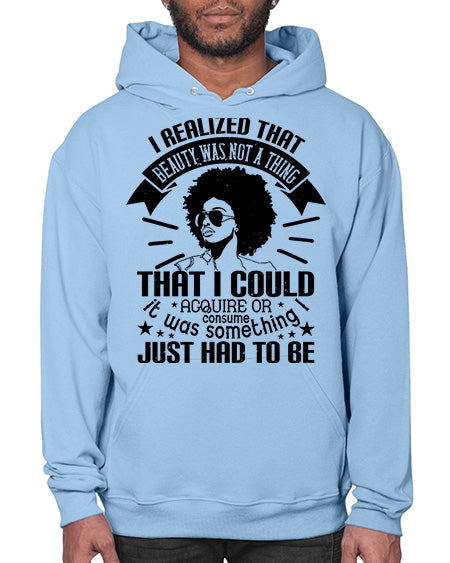 I realized that beauty was not a thing that I could acquire or consume Style 26# - black afro- Hoodie