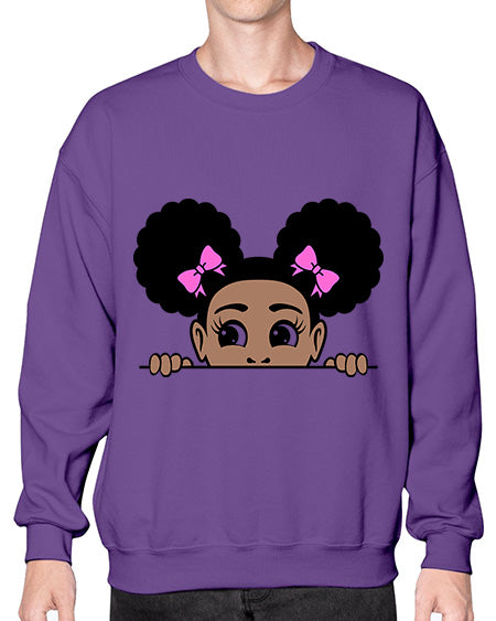 afro puffs girl peekaboo 79# - black girls or women- Sweatshirt - Crew