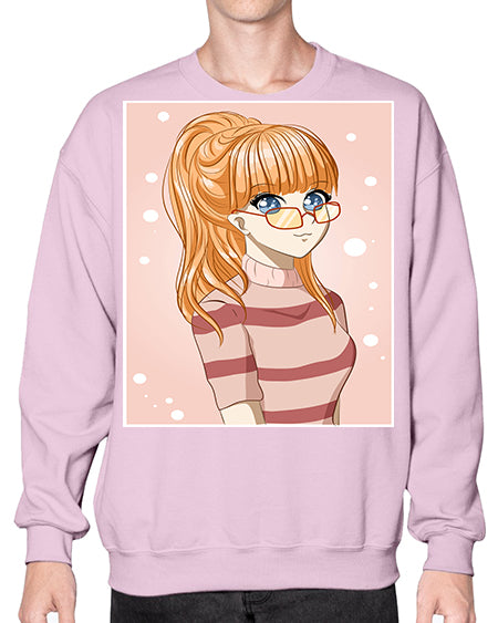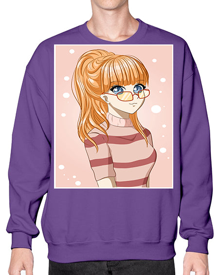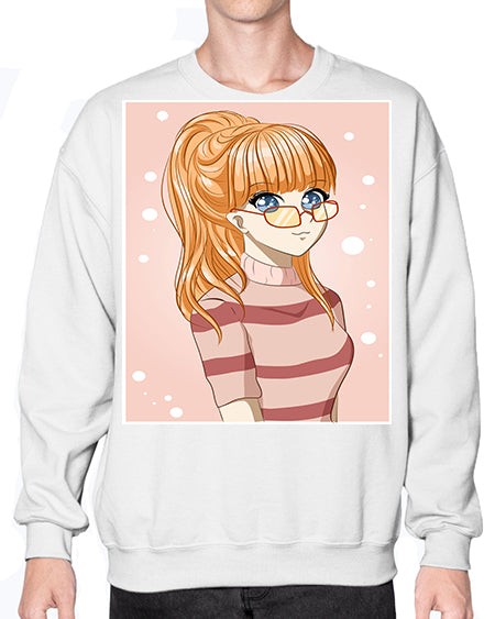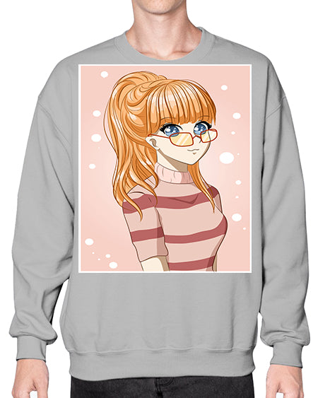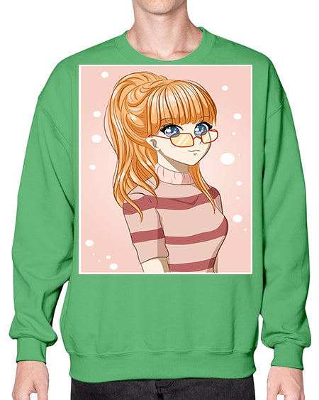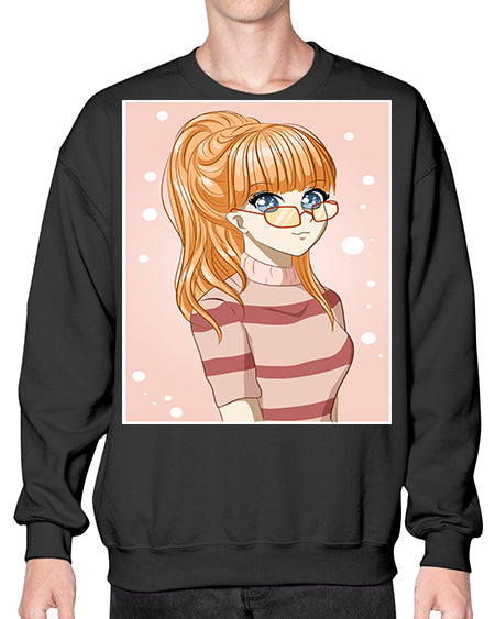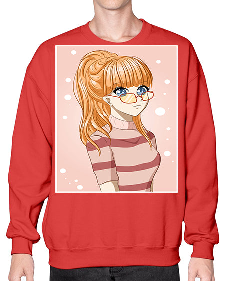 Beautiful and cool girl orange hair with glasses 105# - anime- Sweatshirt - Crew