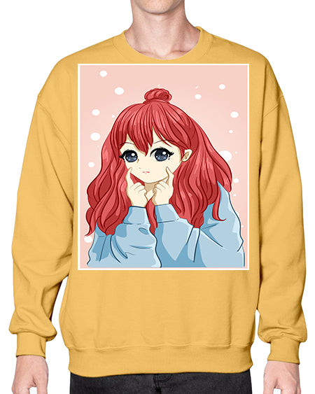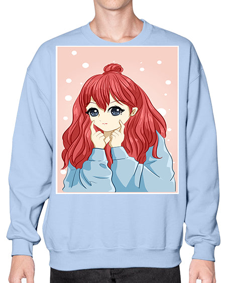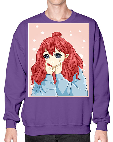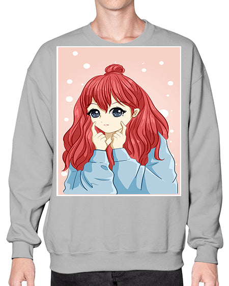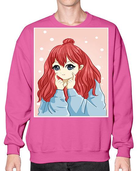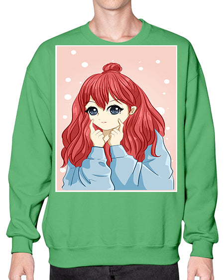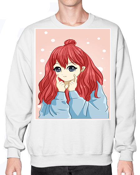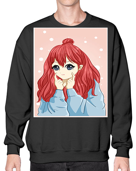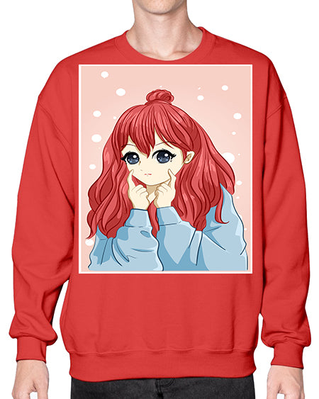 Beautiful and cute girl long red hair with jacket 150# - anime- Sweatshirt - Crew