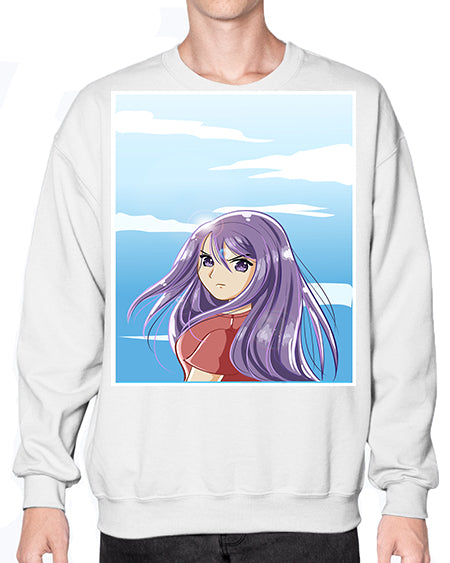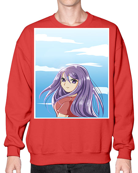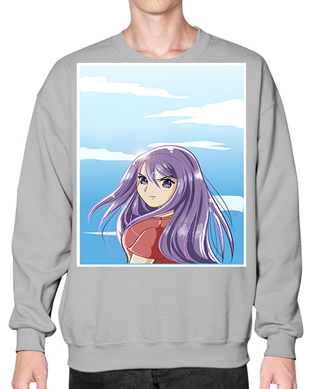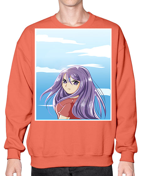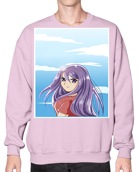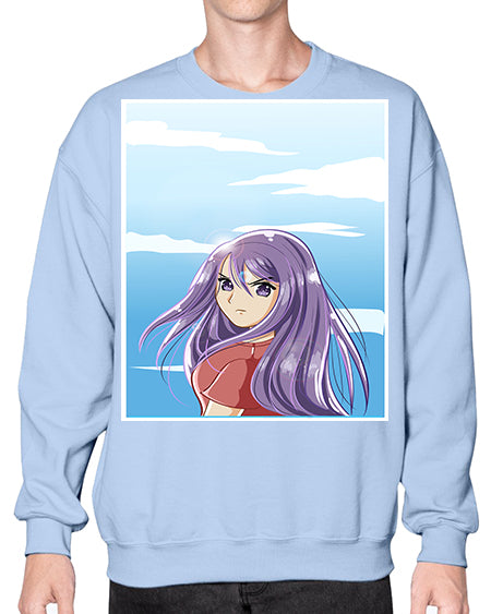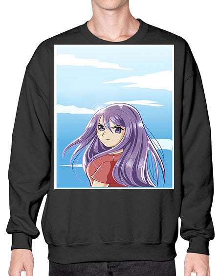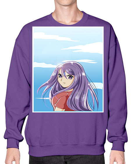 Beautiful and cute girl purple long hair in the summer with 109# - anime- Sweatshirt - Crew