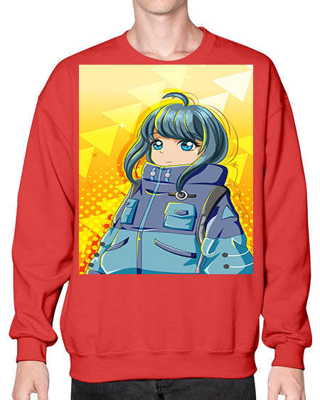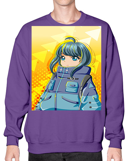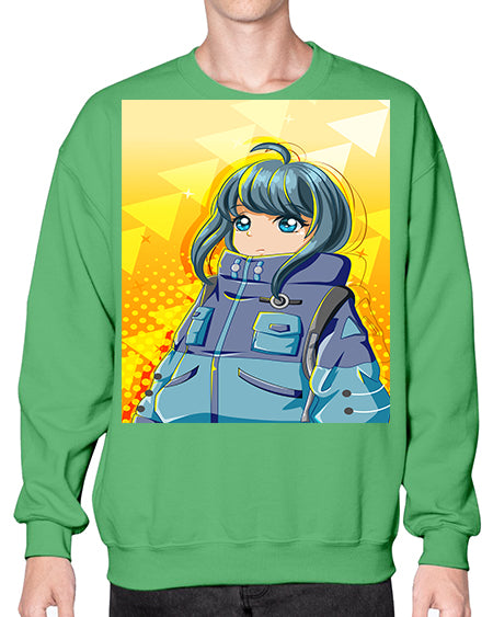 Beautiful and cute girl with big jacket 88# - anime- Sweatshirt - Crew
