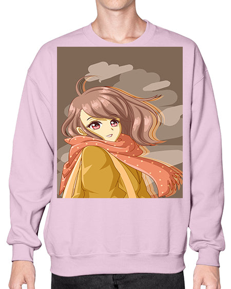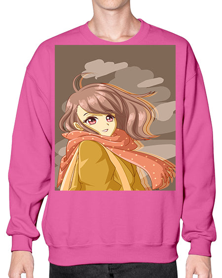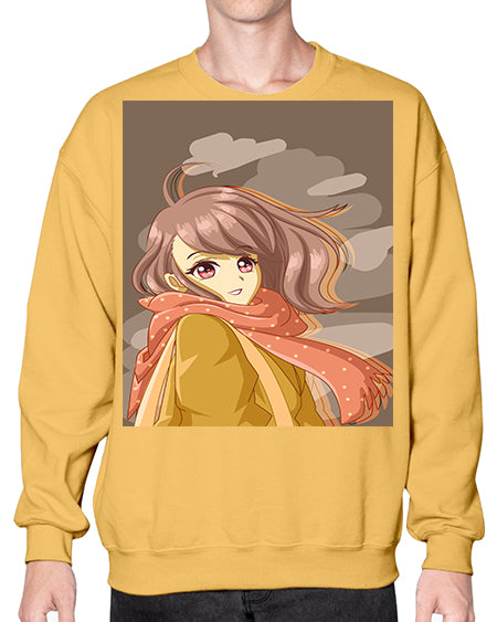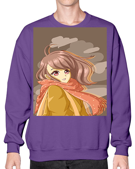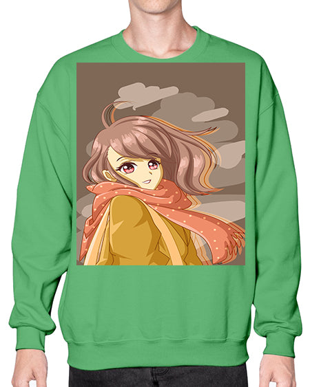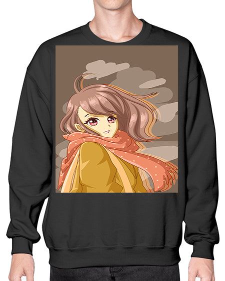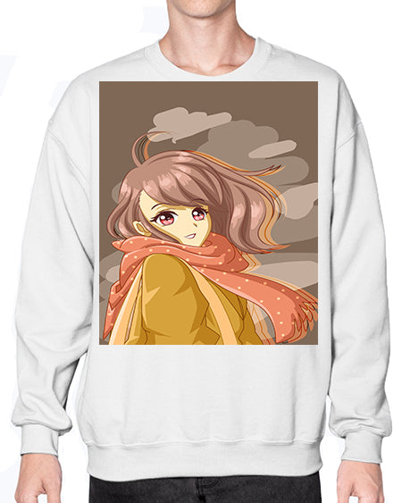 Beautiful and cute girl with scarf 91# - anime- Sweatshirt - Crew