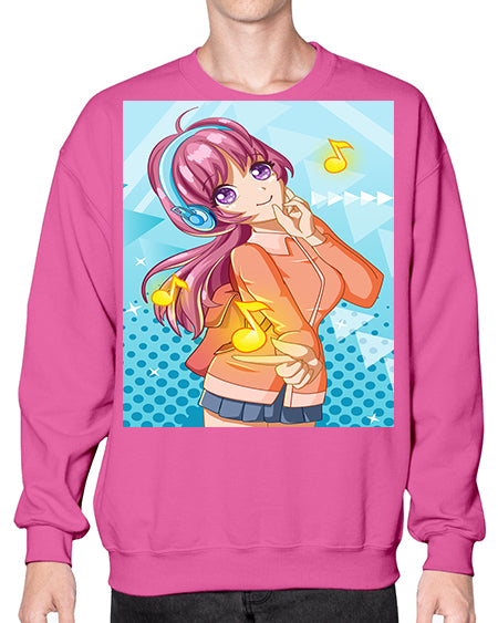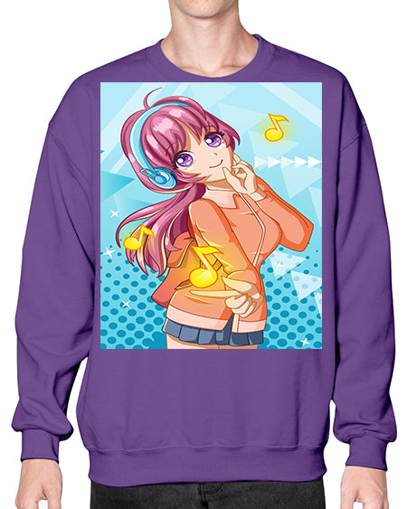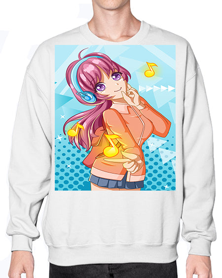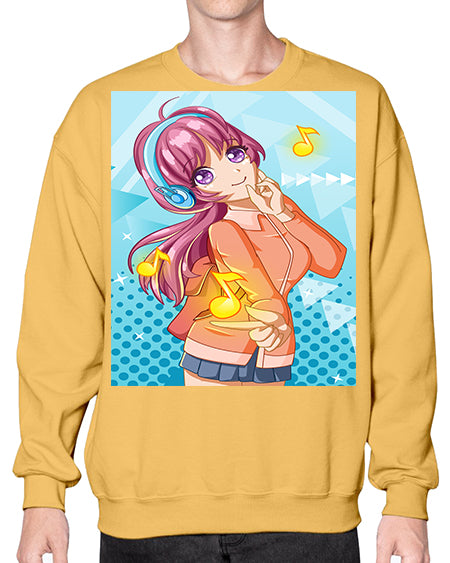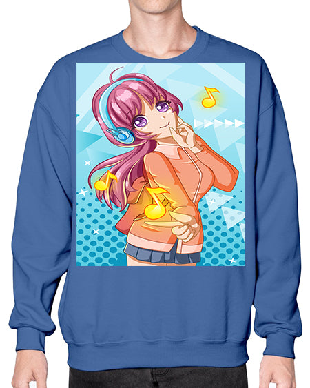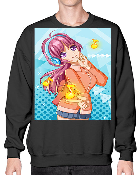 Beautiful and happy girl listening music with music notes 82# - anime- Sweatshirt - Crew