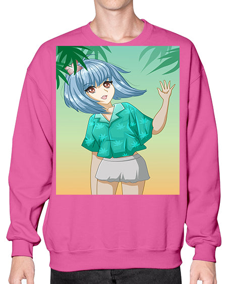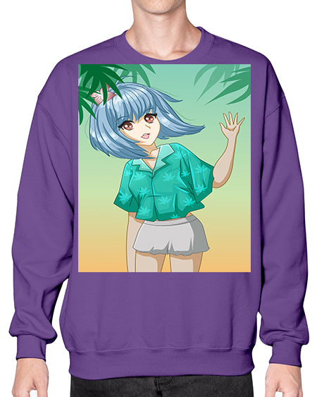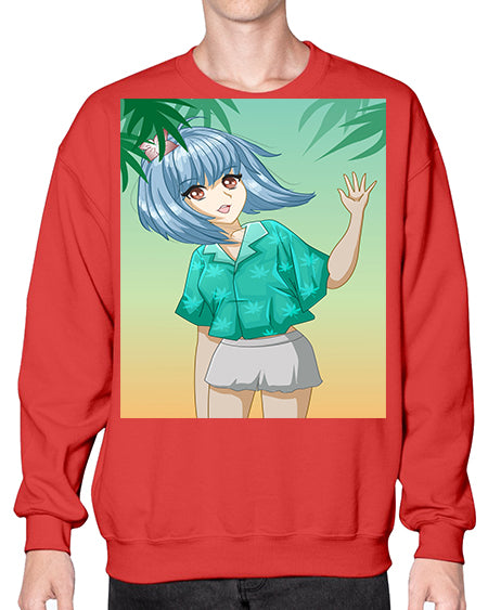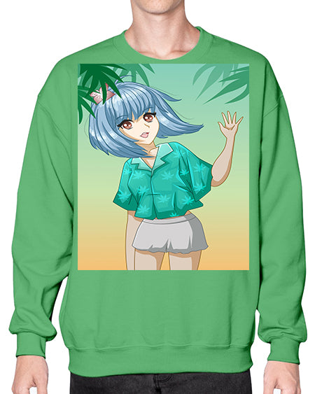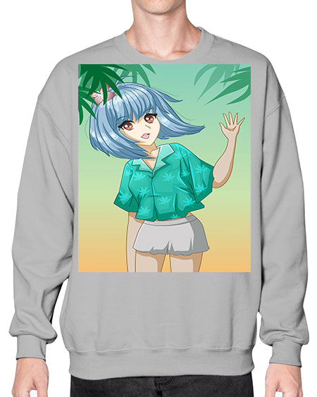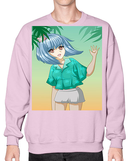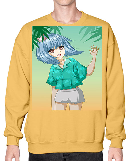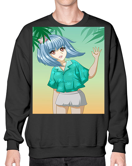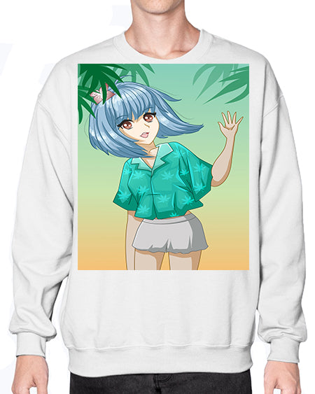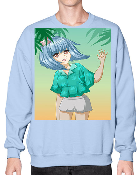 Beautiful and happy girl on the beach in summer 48# - anime- Sweatshirt - Crew